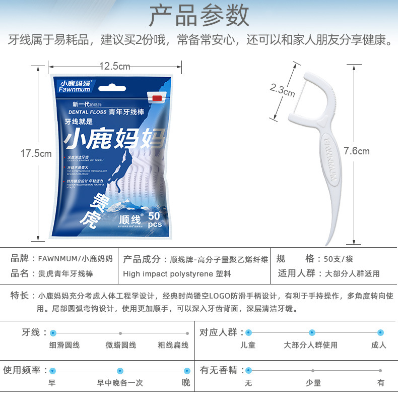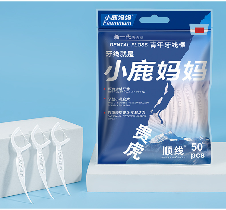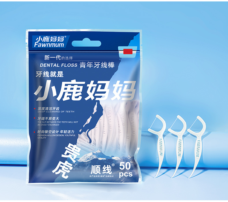 小鹿妈妈牙线 高顺一次性牙线棒袋装现货剔牙签牙线盒装批发工厂