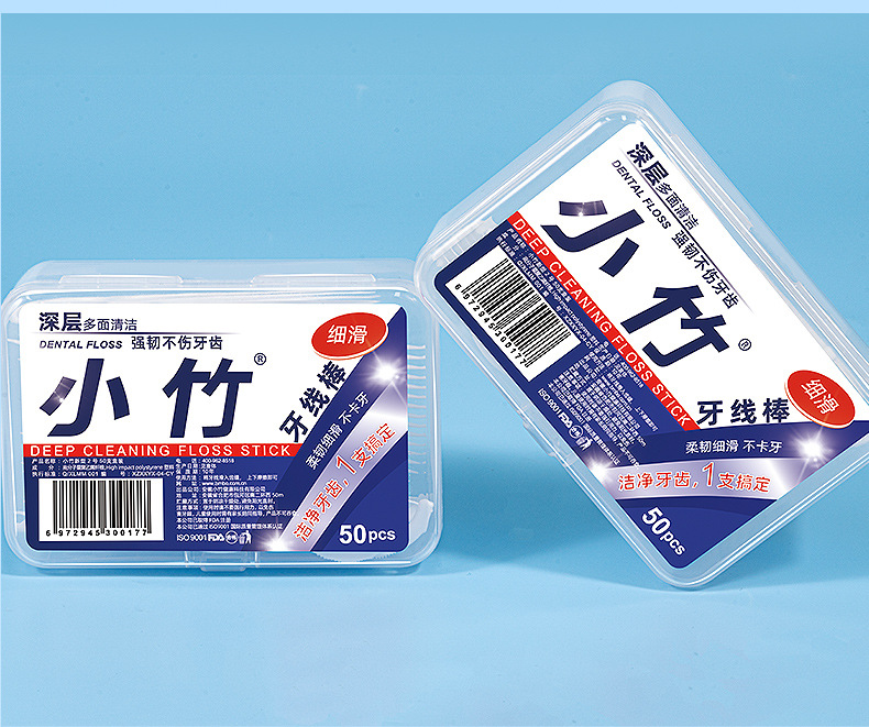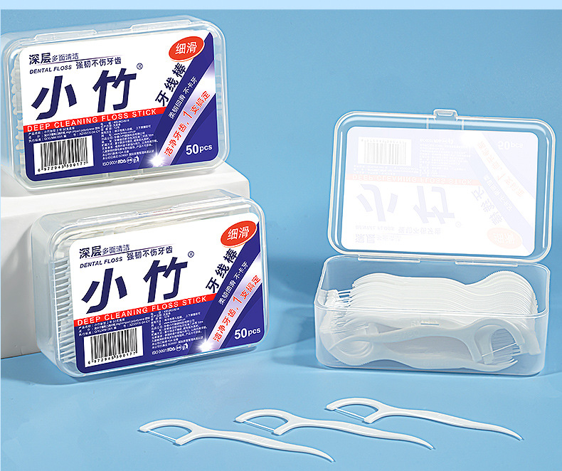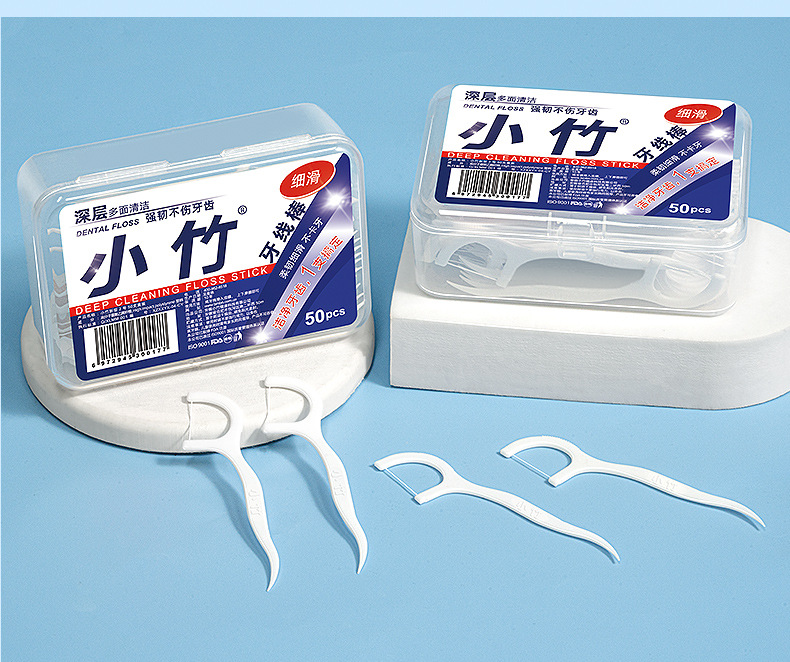 小竹牙线塑料牙签口腔清洁超细牙线盒装50支一次性牙线棒现货批发