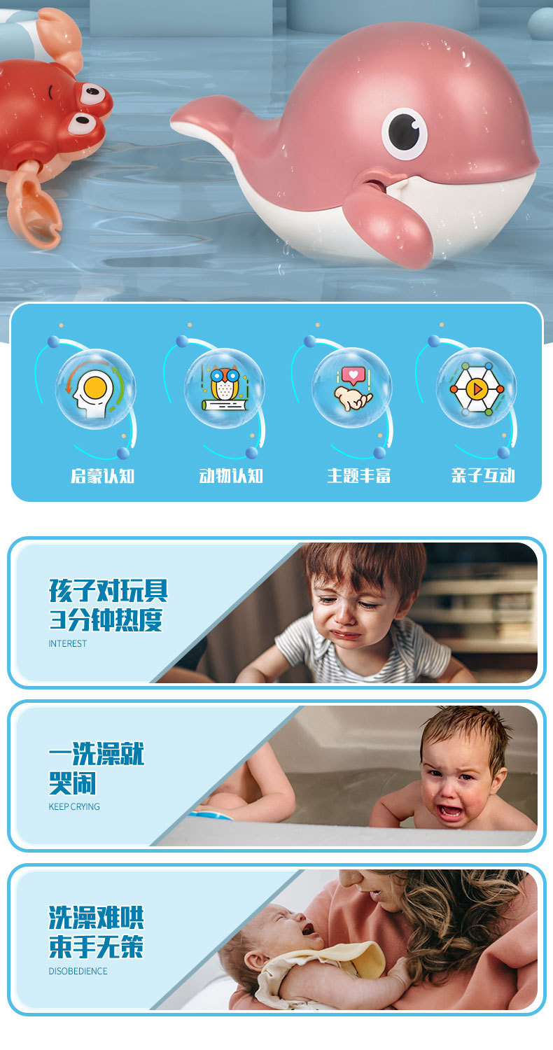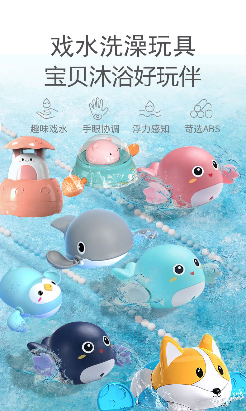 跨境宝宝浴室洗澡戏水玩具发条卡通乌龟鸭子小鲸鱼 儿童游泳沐浴
