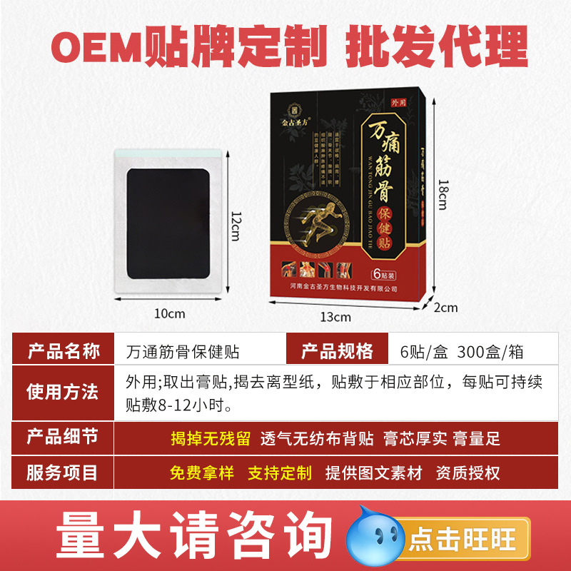 黑膏贴万痛筋骨保健贴颈椎贴肩周足跟贴黑膏贴批发无残留老黑膏贴