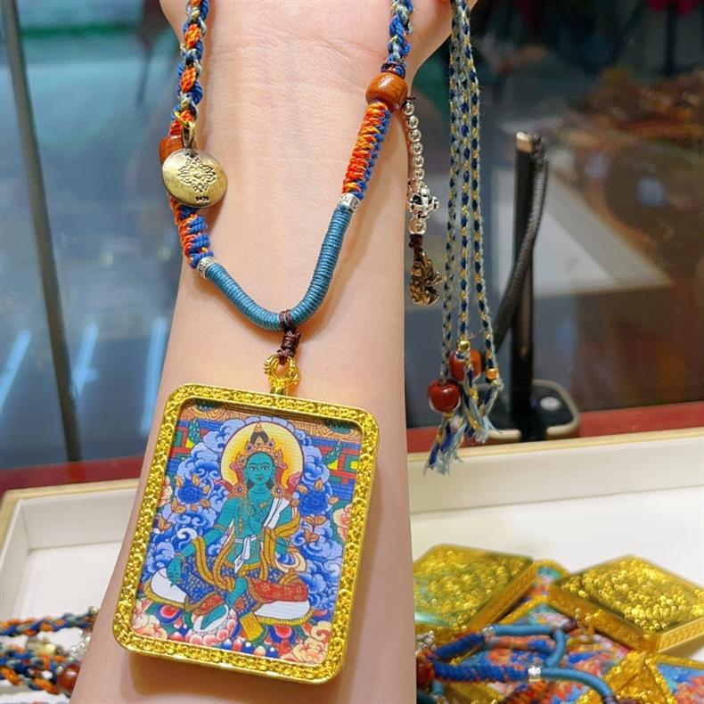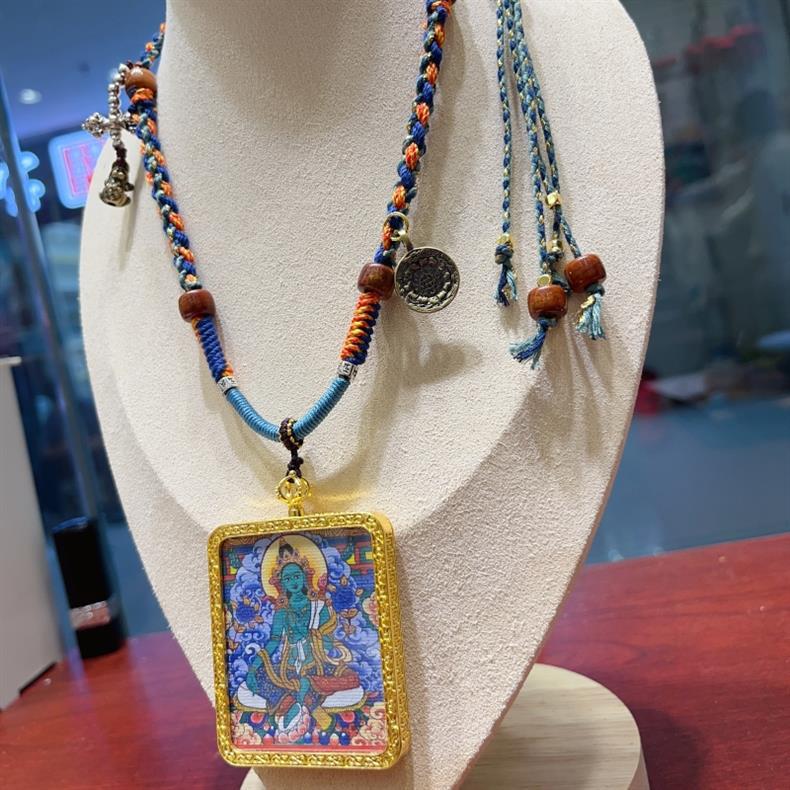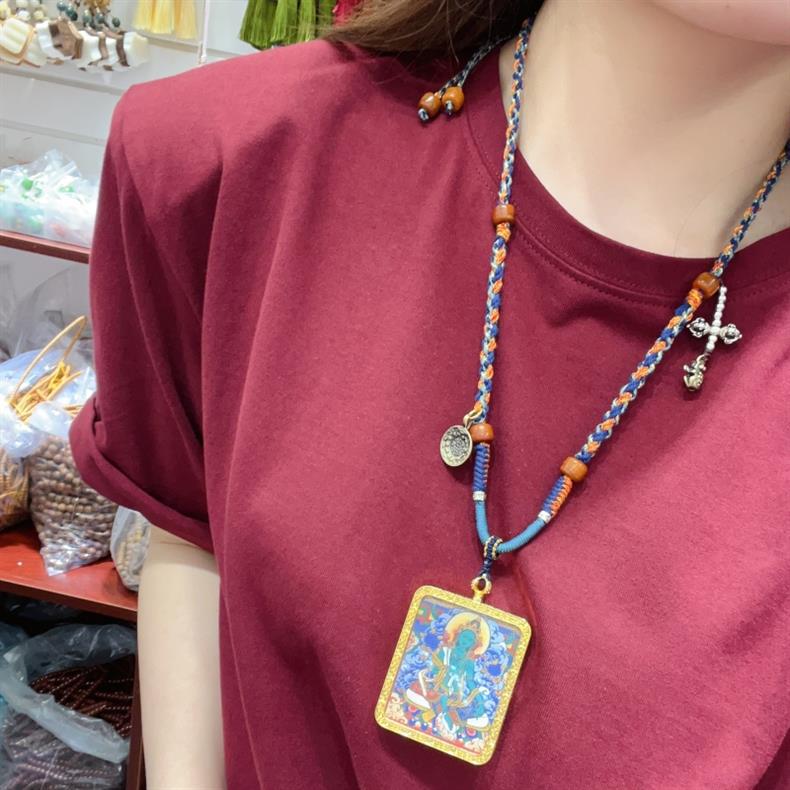 原创设计藏风唐卡绿度母项链搭配牛骨藏式手工纯铜配饰毛衣链礼物