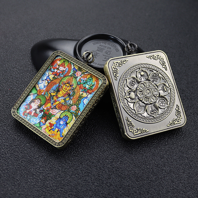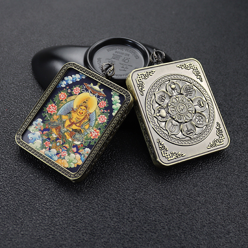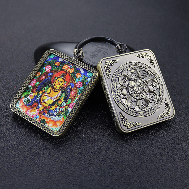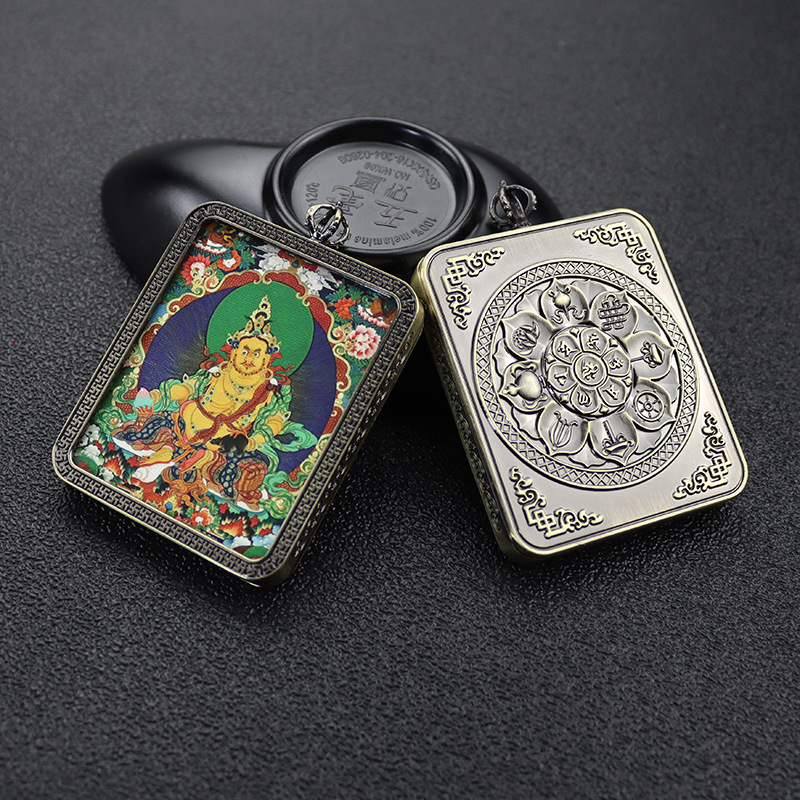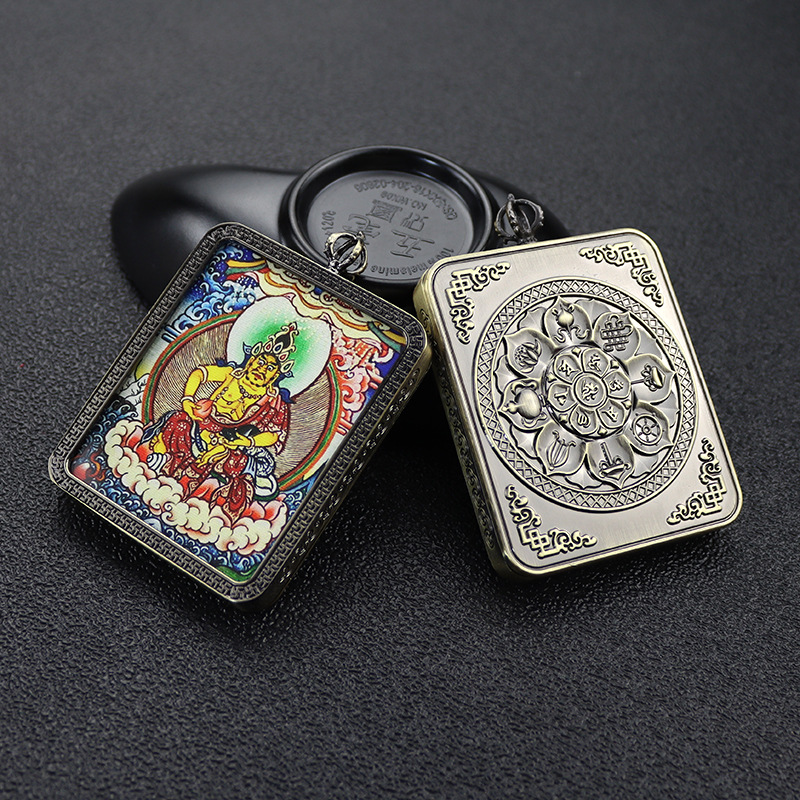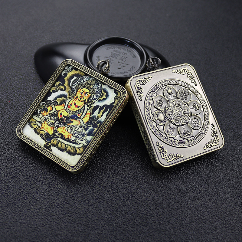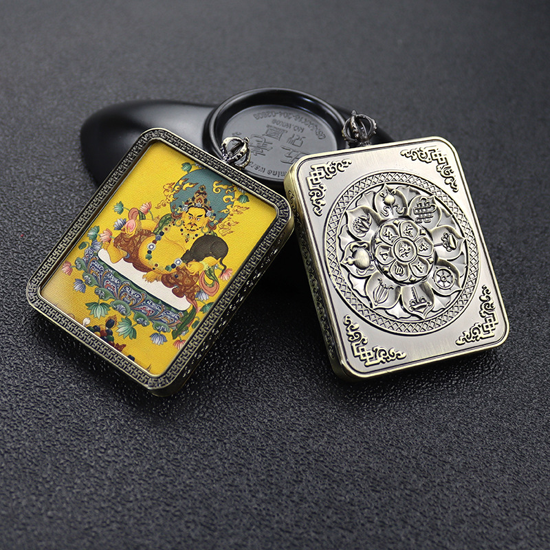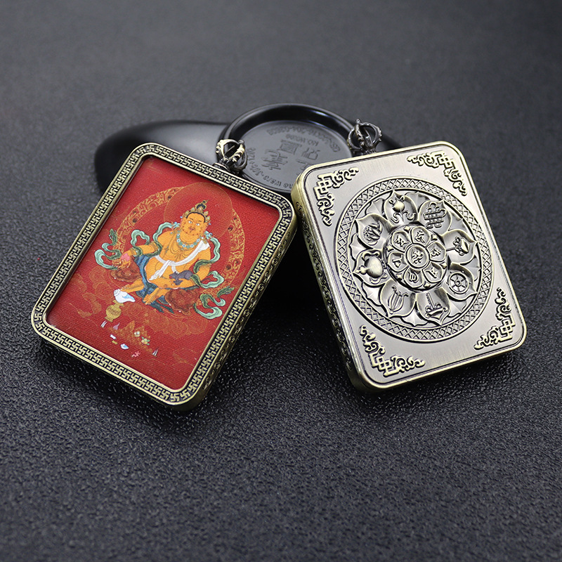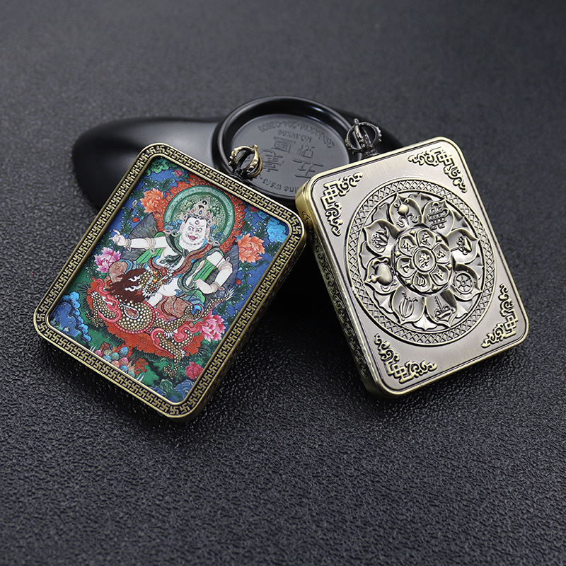 西藏唐卡吊坠大黑天黄财神文殊方形唐卡画盒景区寺院文玩挂件吊坠