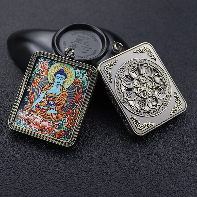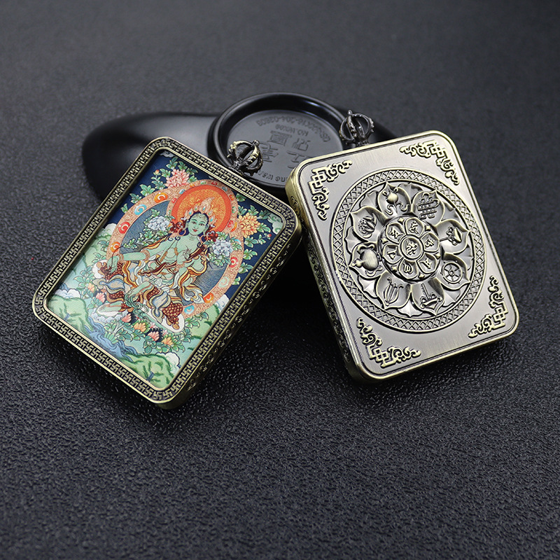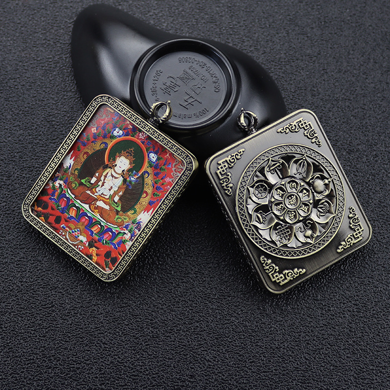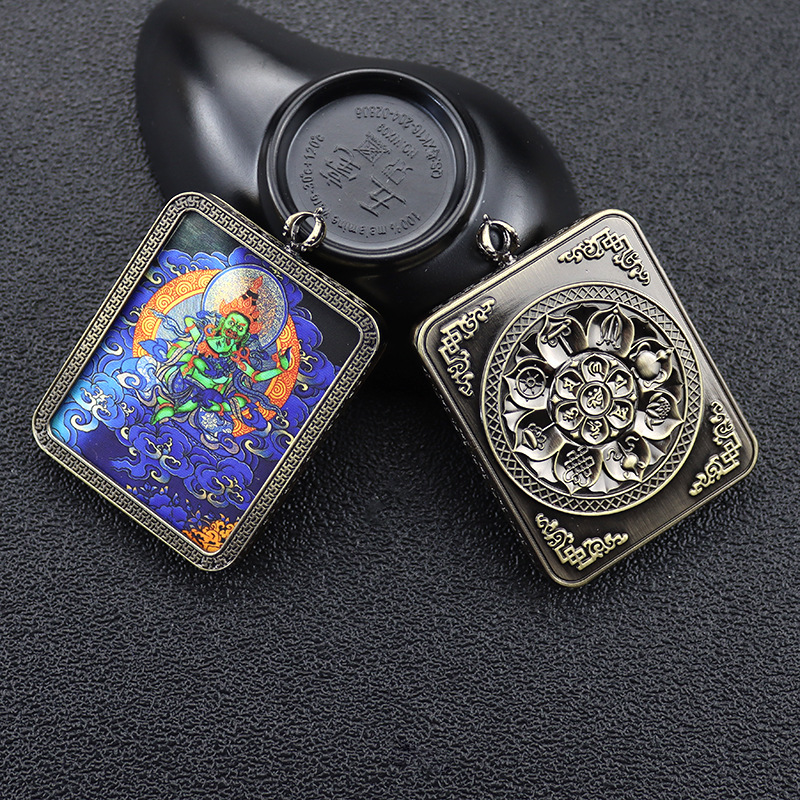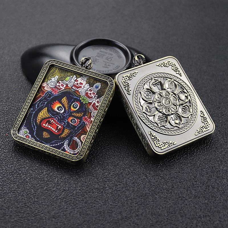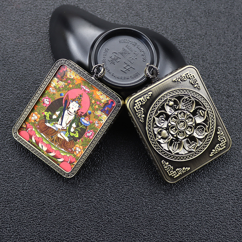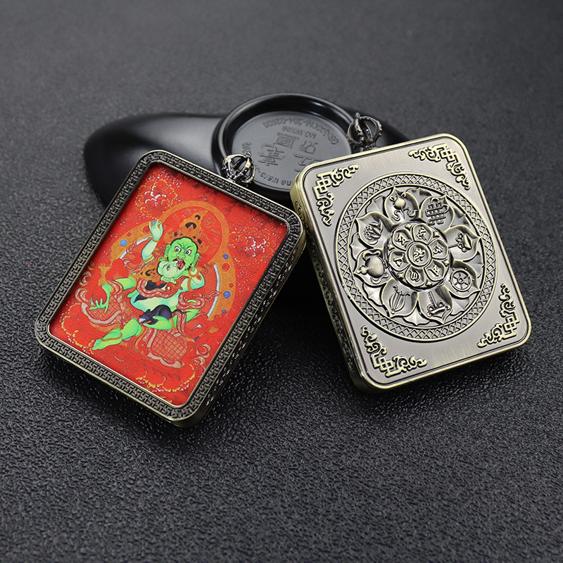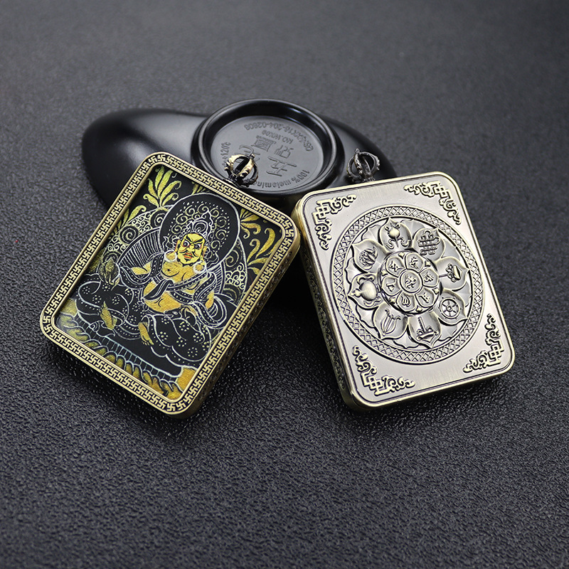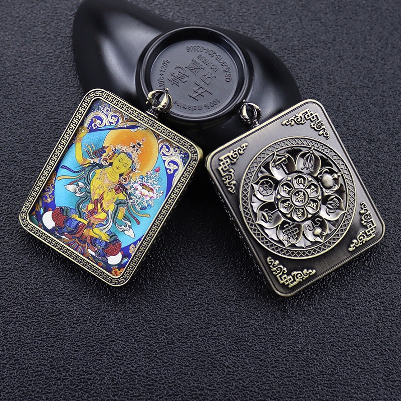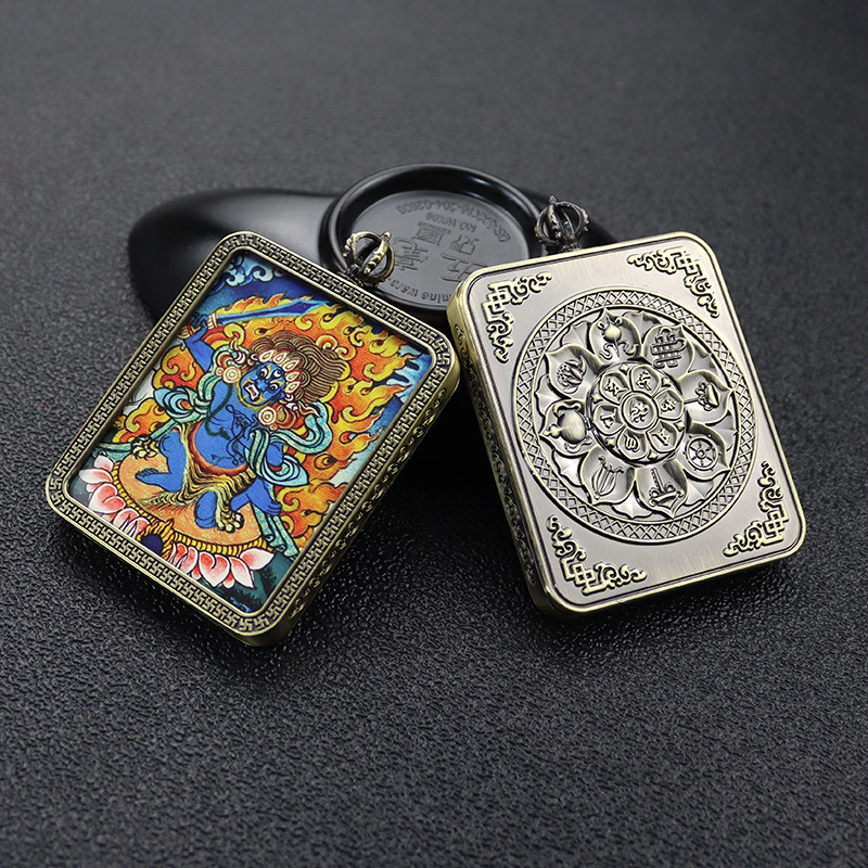 西藏唐卡吊坠大黑天黄财神文殊方形唐卡画盒景区寺院文玩挂件吊坠