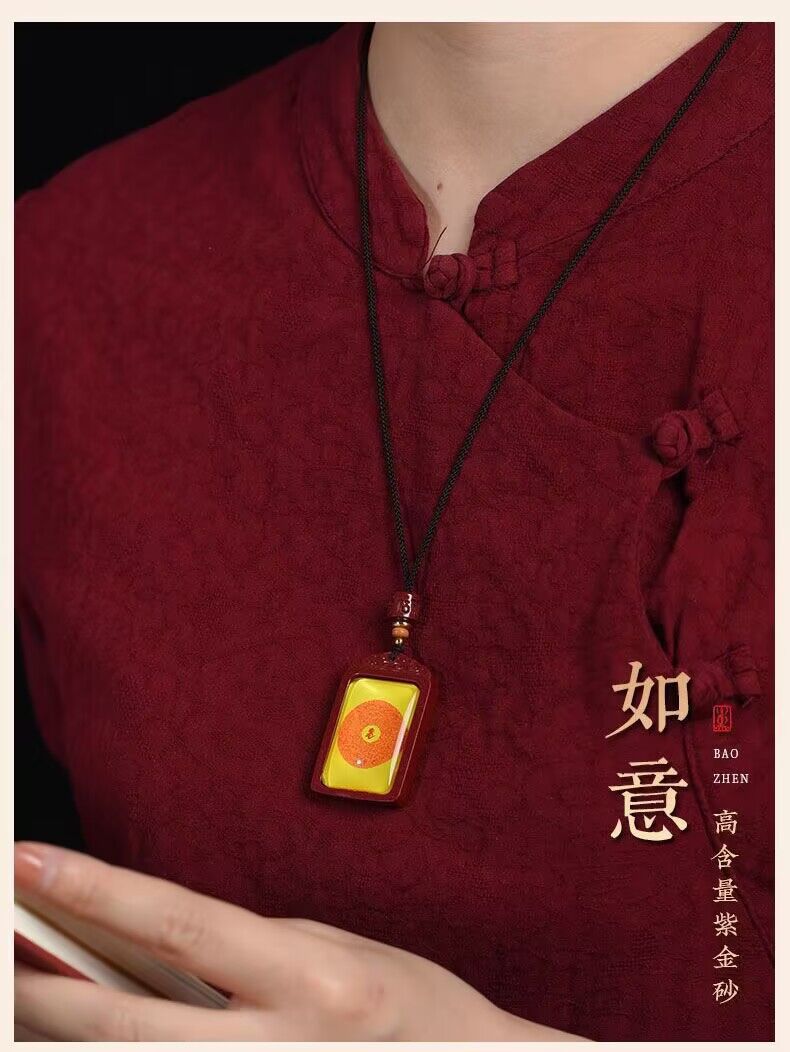 原矿朱砂唐卡黄财神楞严咒吊坠本命年挂件般若眼项链男女款代发