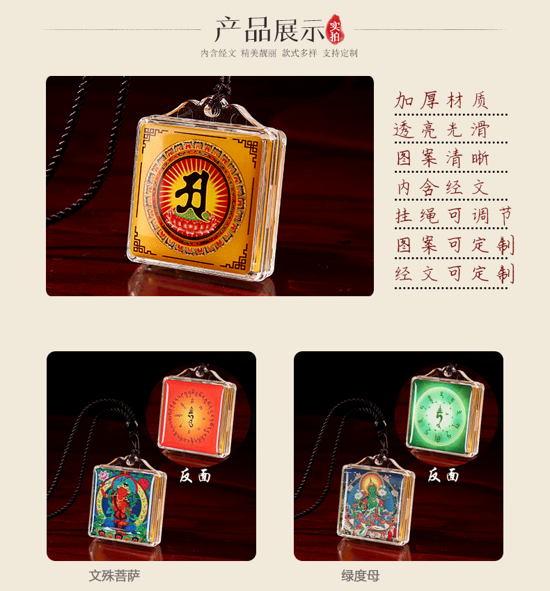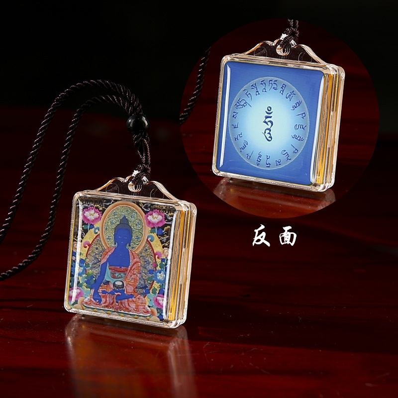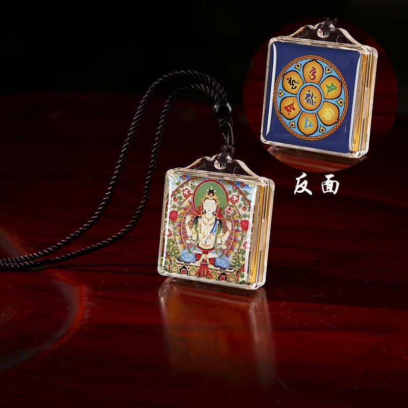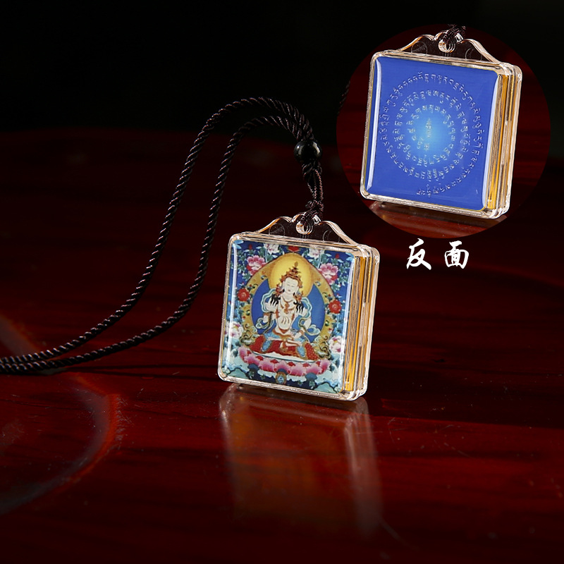 唐卡彩绘楞严咒吊坠黄财神绿度母药师佛扎基拉母可拆嘎乌盒挂件