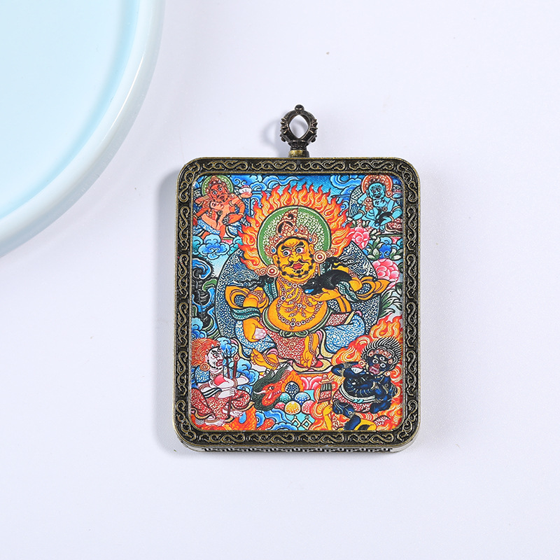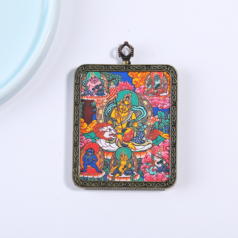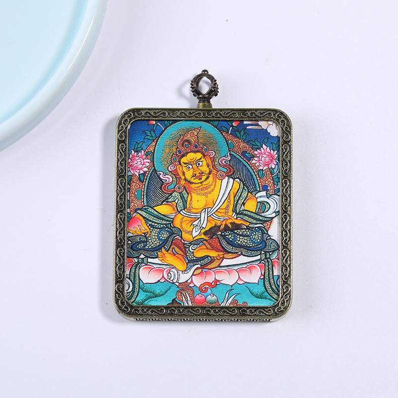手绘藏式黄财神吊牌吊坠唐卡项链