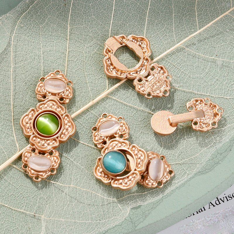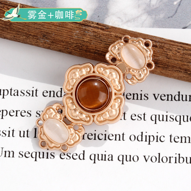 汉服子母扣古风立领云肩金属对扣35MM贴片猫眼明制宋制披肩搭扣子