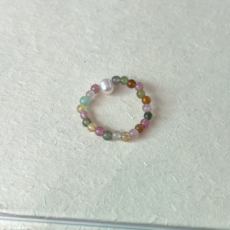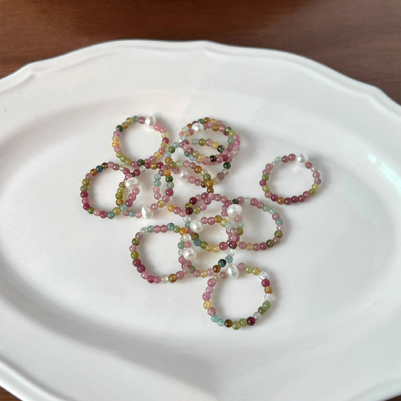 小众设计高级感珍珠珐琅装饰戒指女时尚可爱串珠百搭弹力绳食指戒