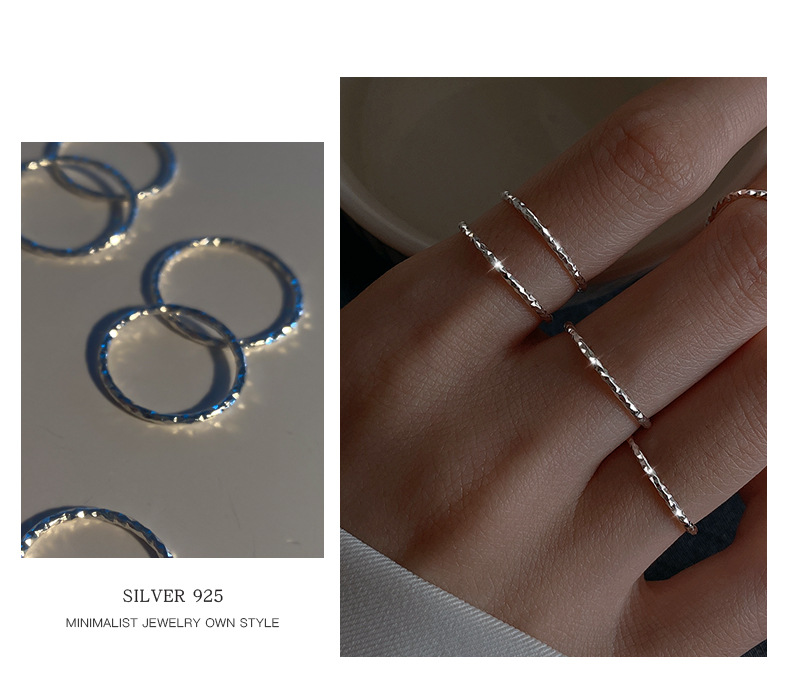 波光粼粼s925纯银意大利ins风闪光素戒裸冷淡风戒指女满天星细戒