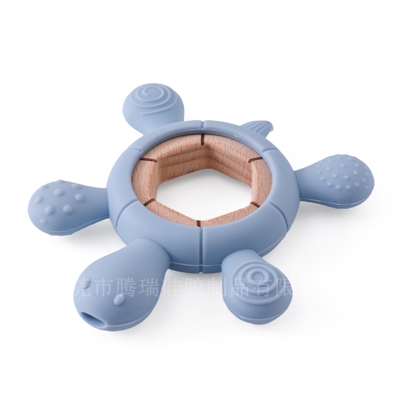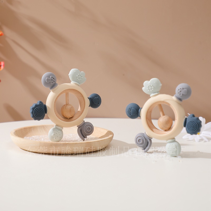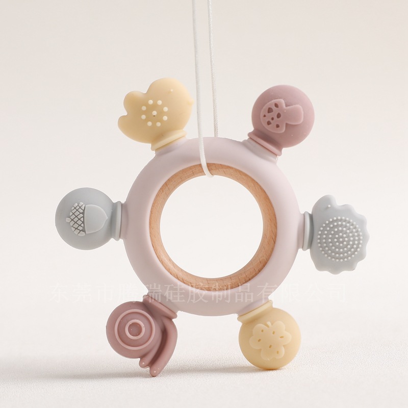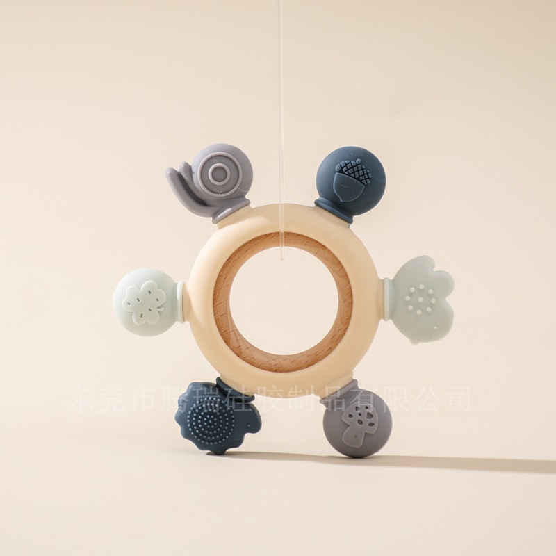 亚马逊新款森林动物牙胶 婴儿磨牙防吃手硅胶咬咬乐安抚摇铃玩具