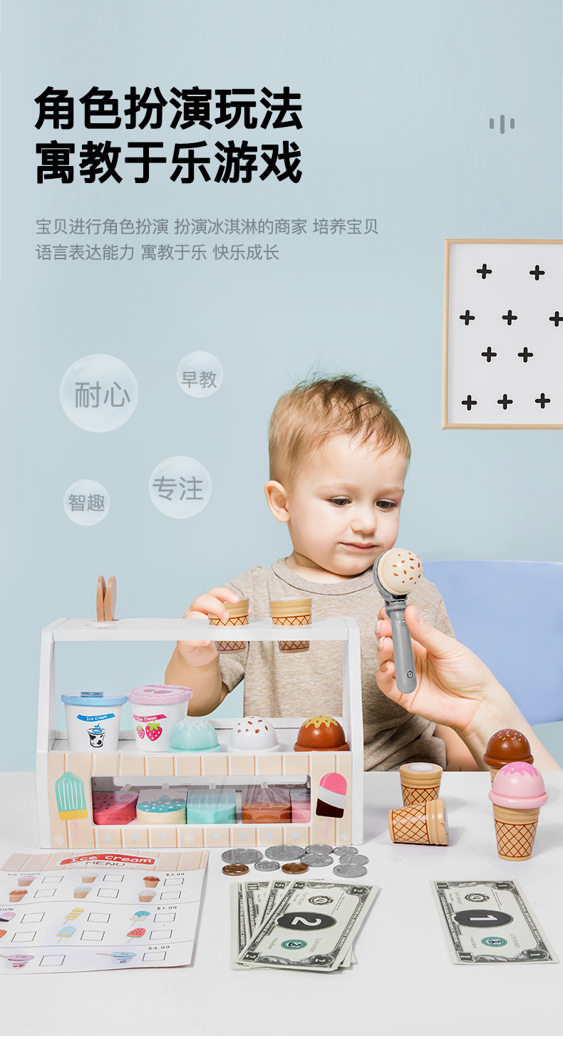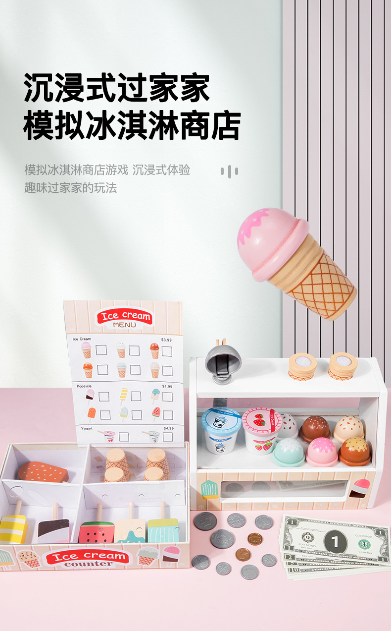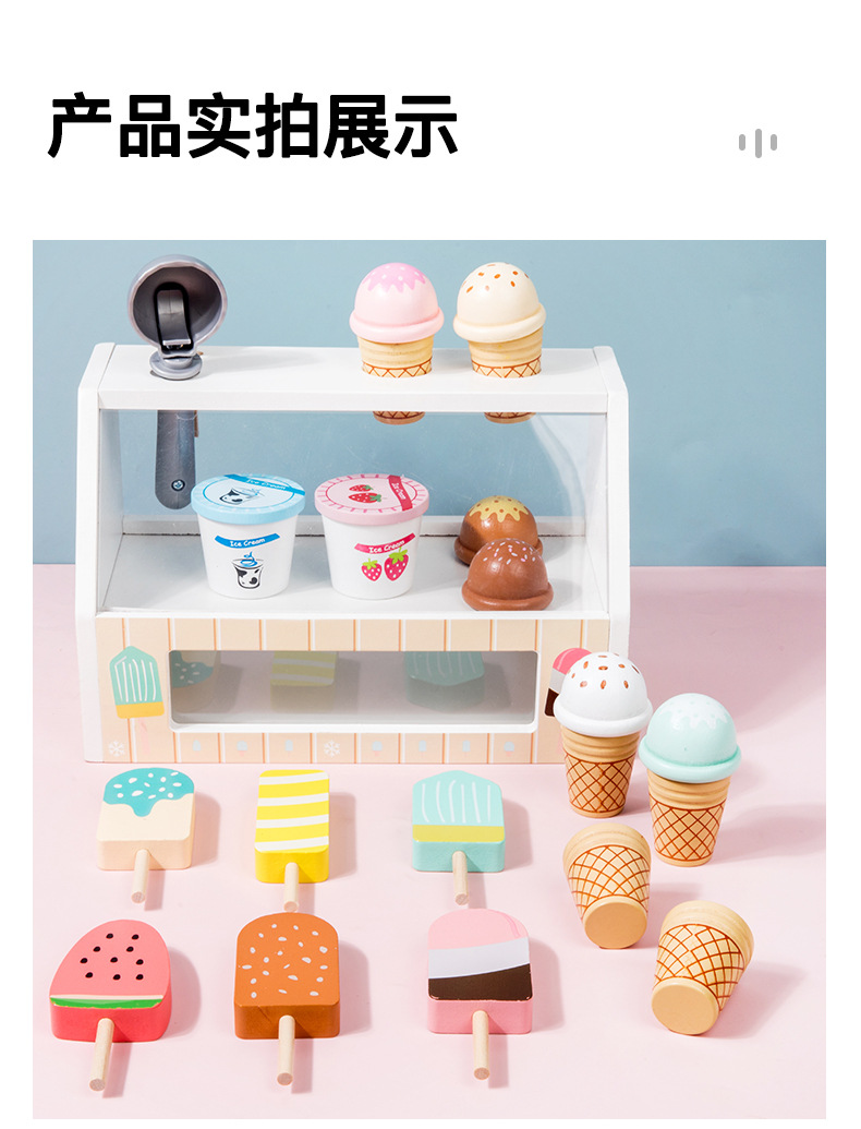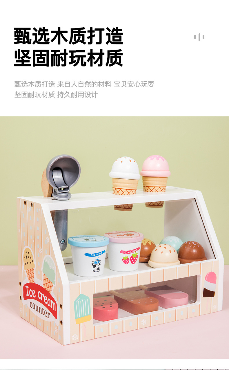 儿童木质仿真过家家雪糕冰淇淋售卖商店小卖部宝宝角色扮演玩具