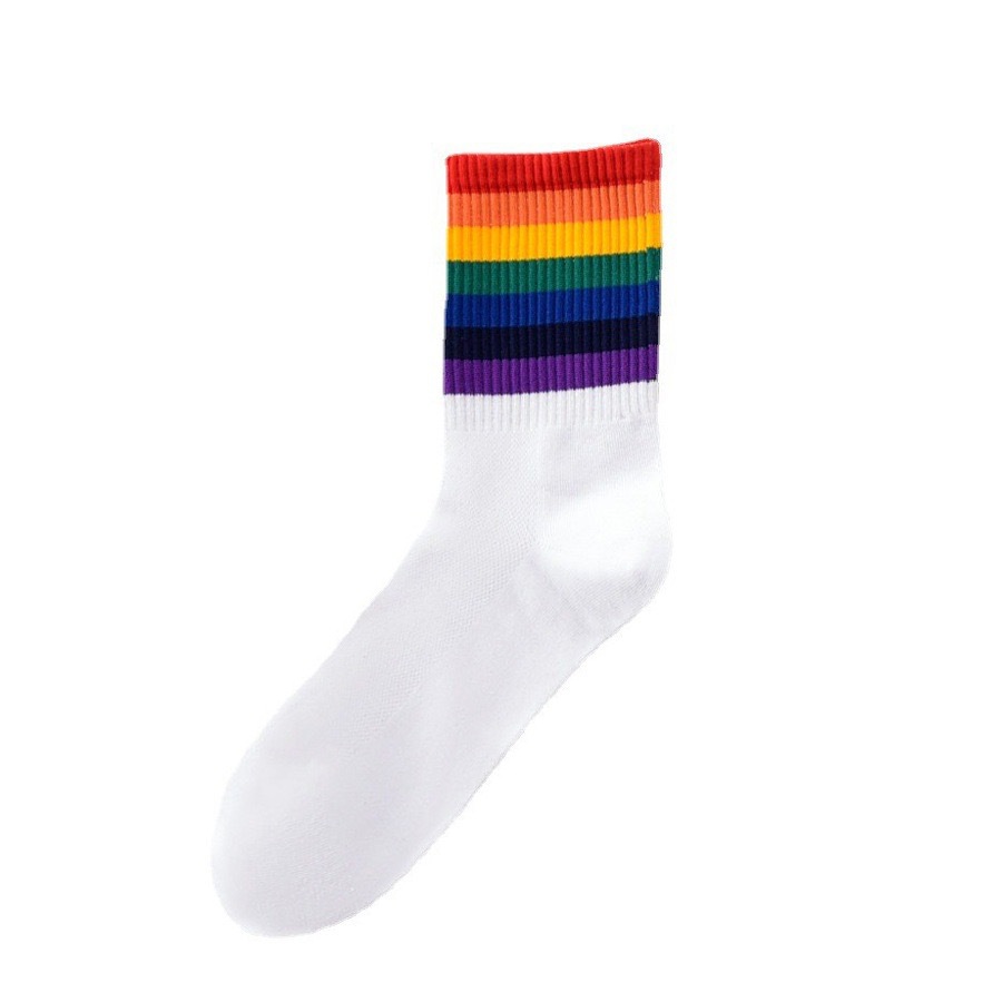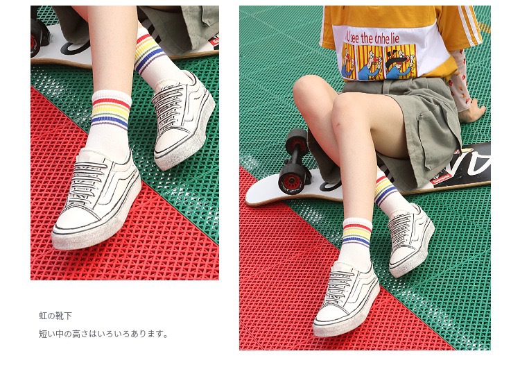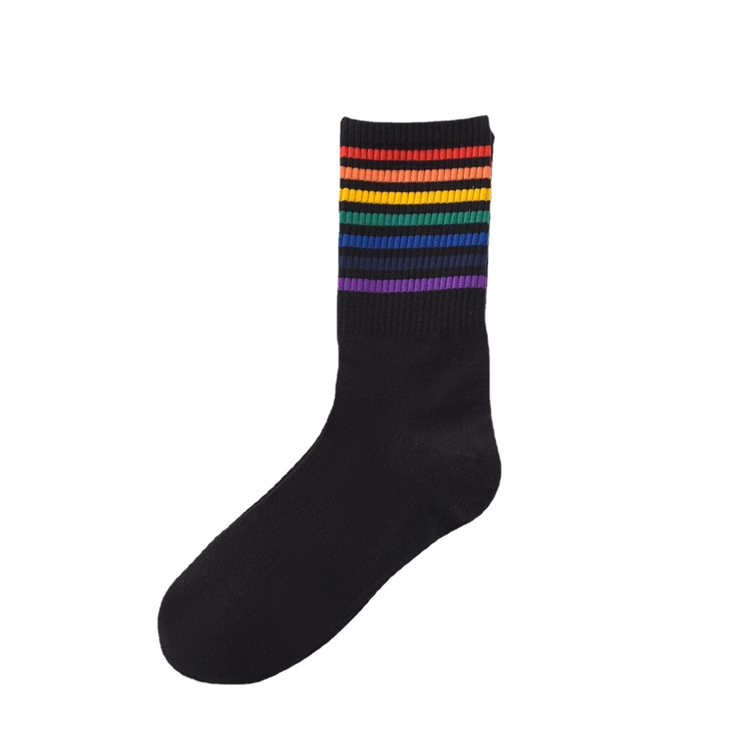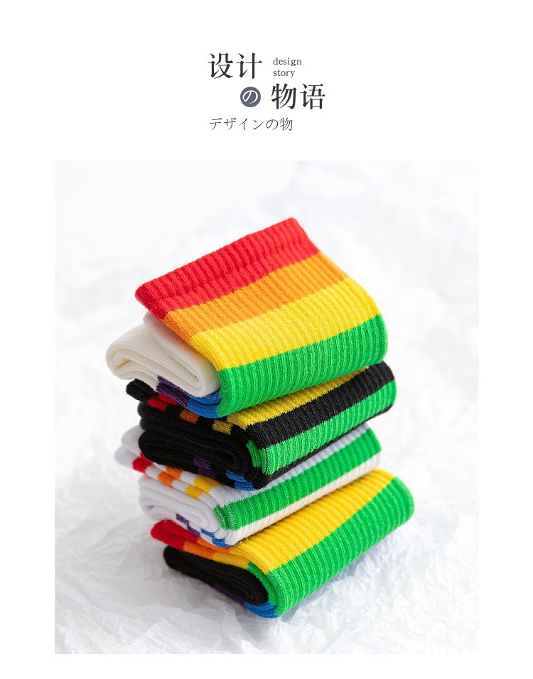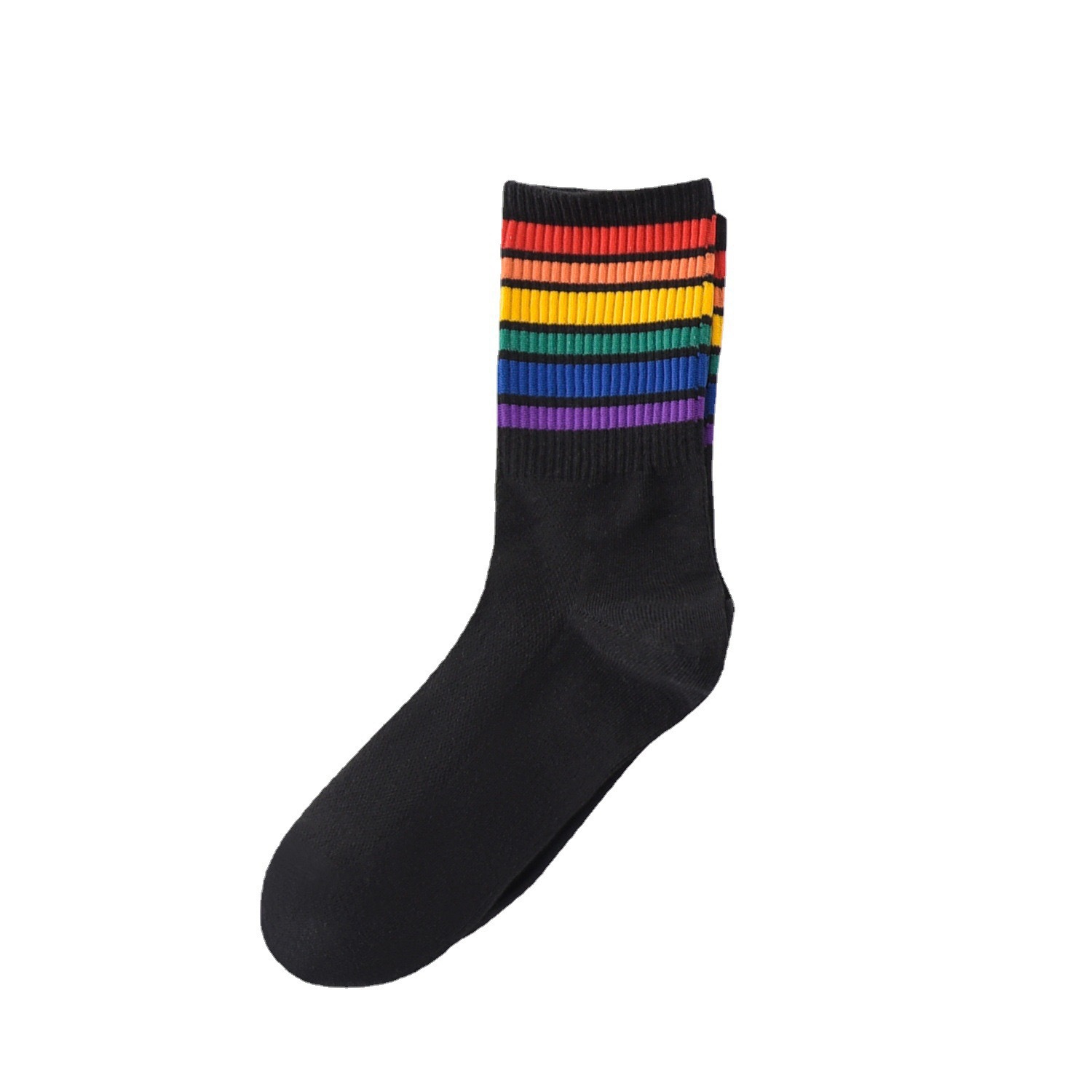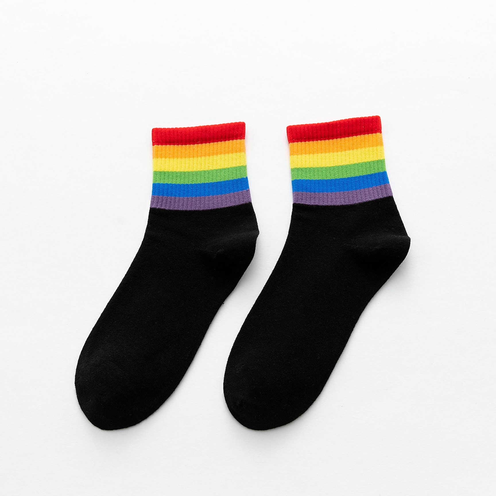 新款彩虹袜子女中筒短筒潮街头ins韩版外穿日系网红黑白色彩虹袜