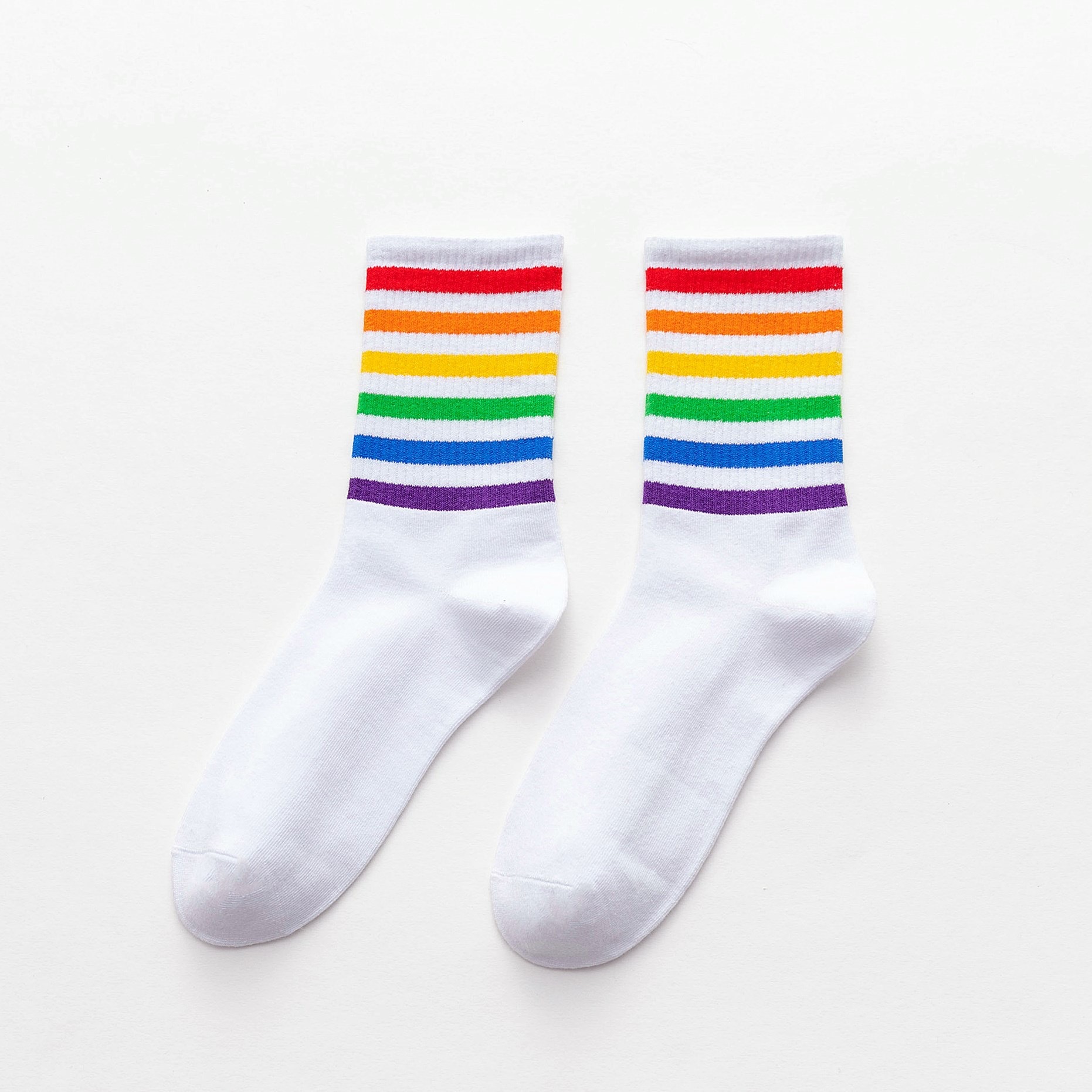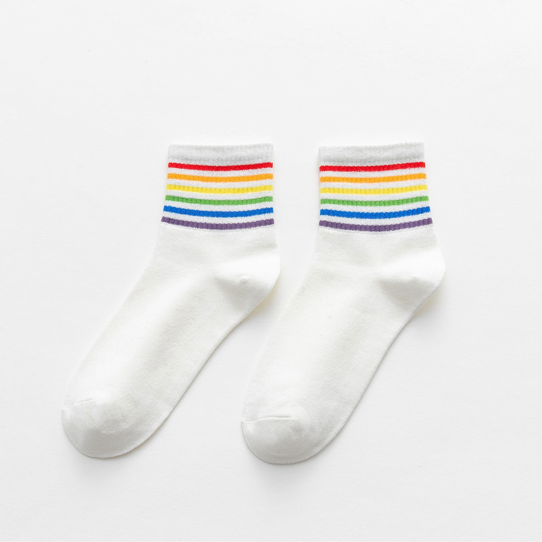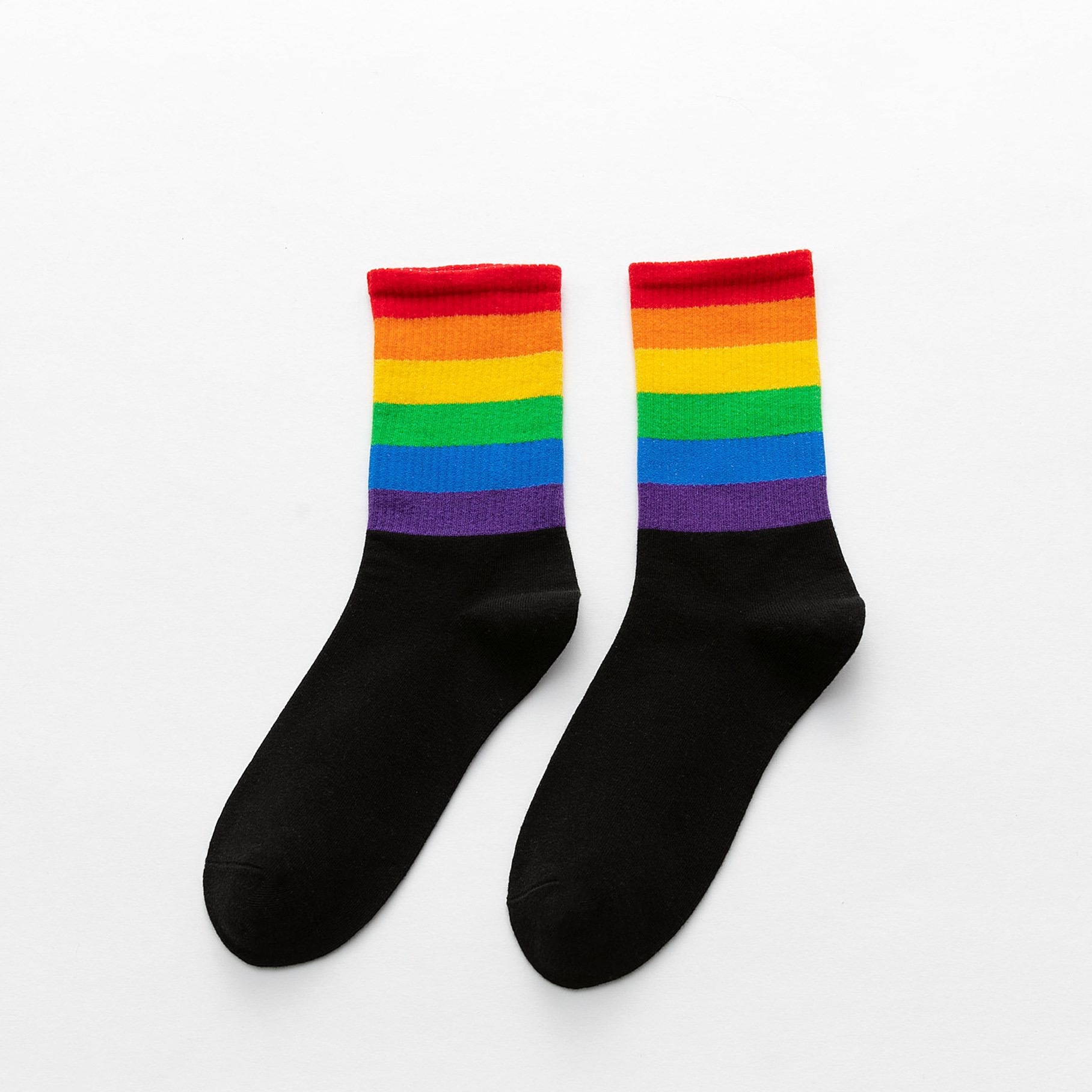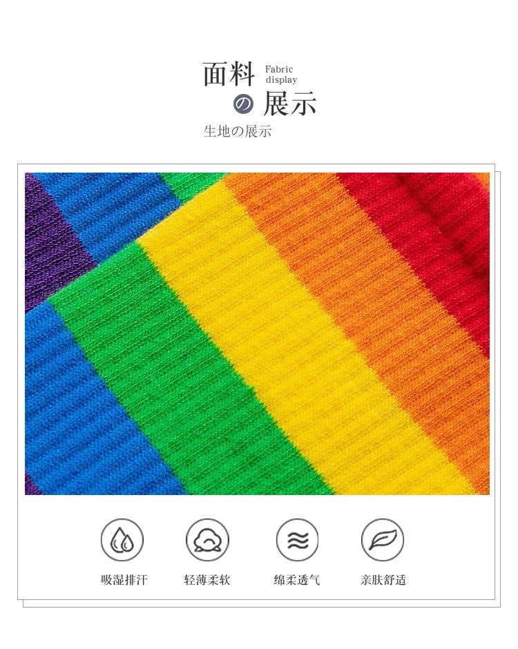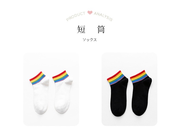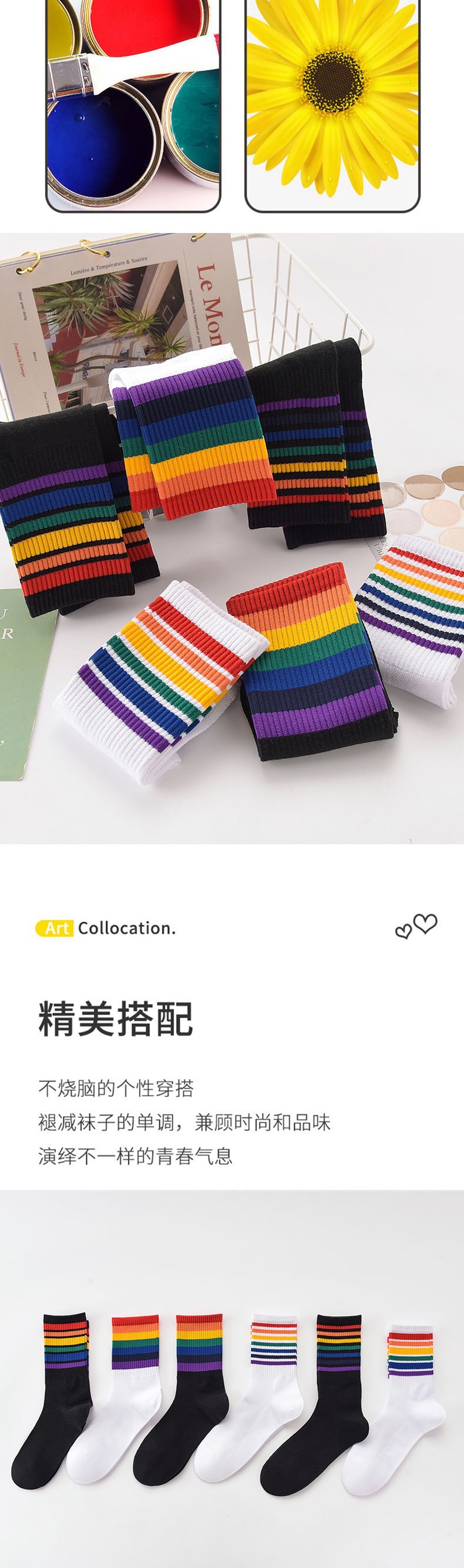 新款彩虹袜子女中筒短筒潮街头ins韩版外穿日系网红黑白色彩虹袜