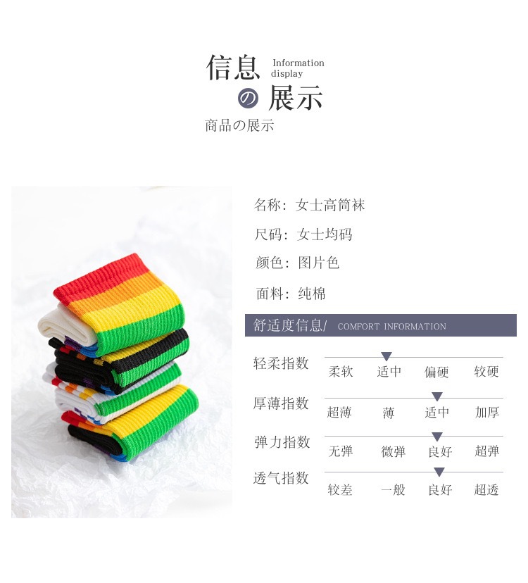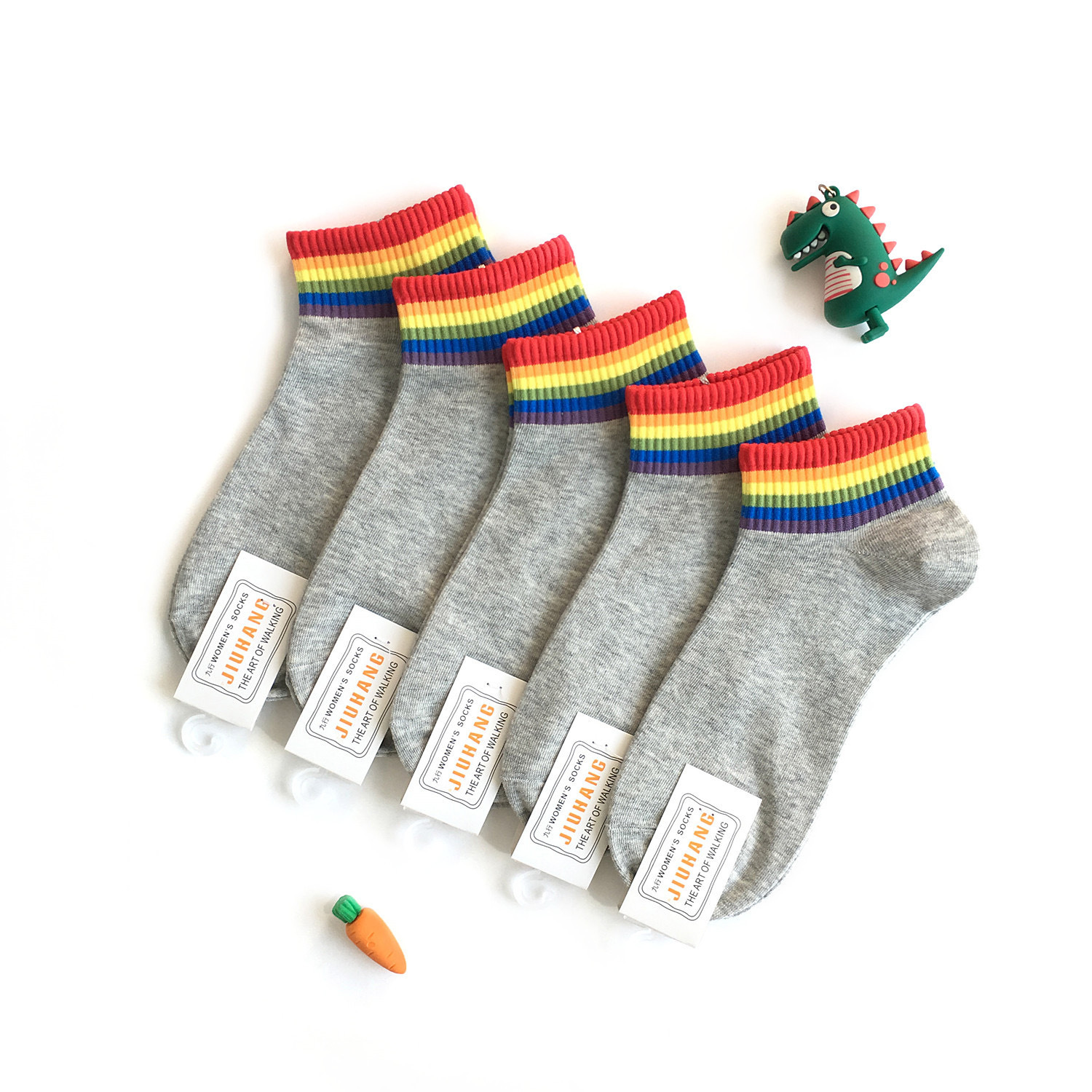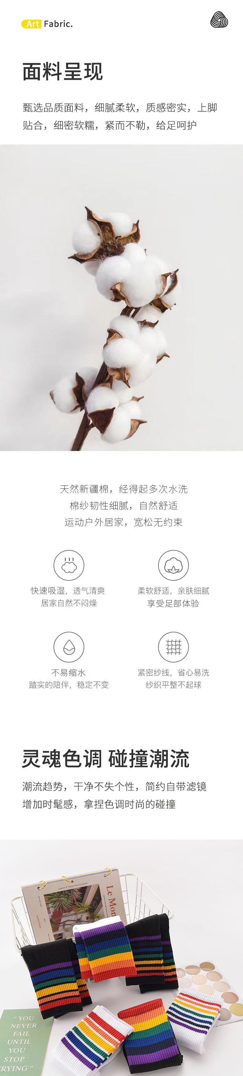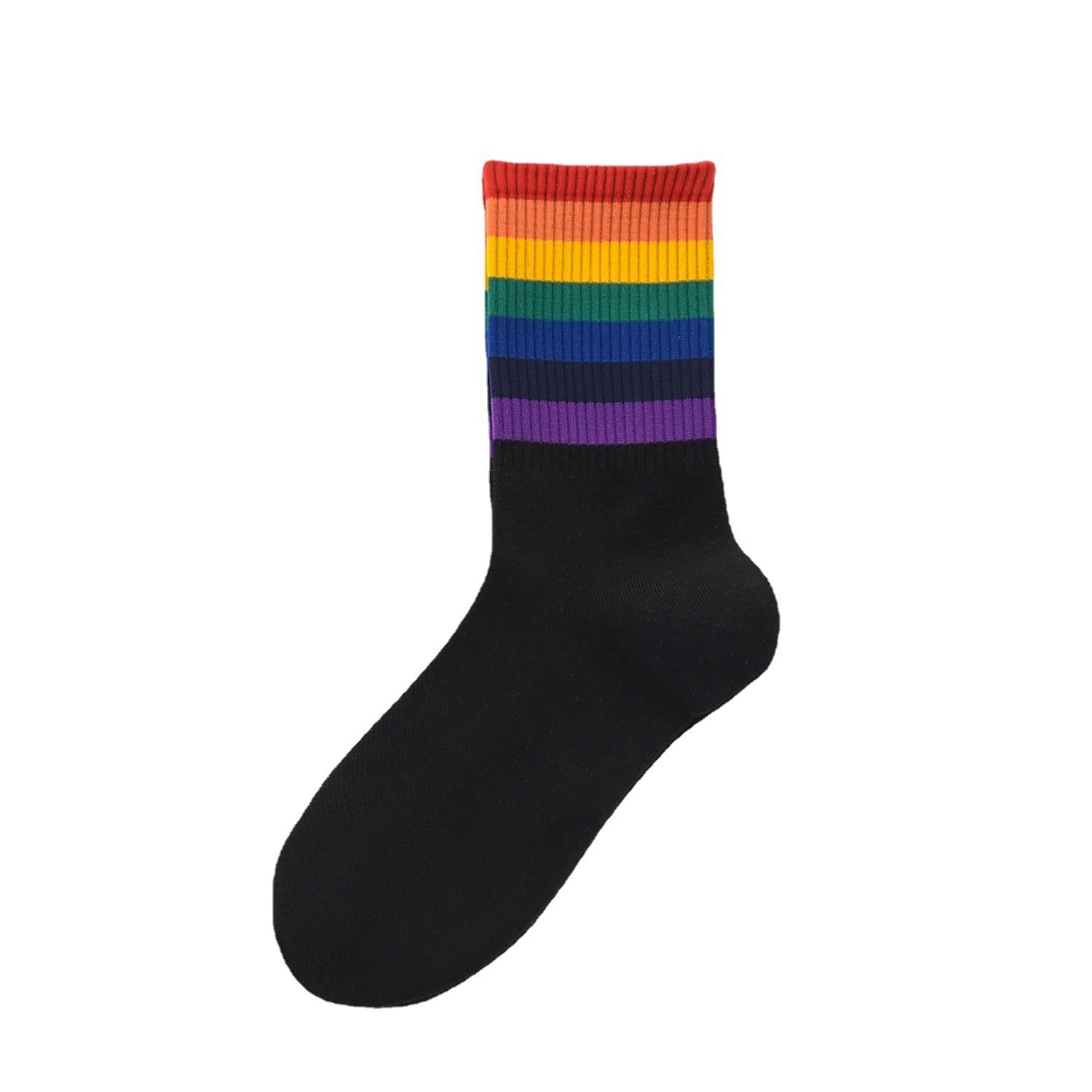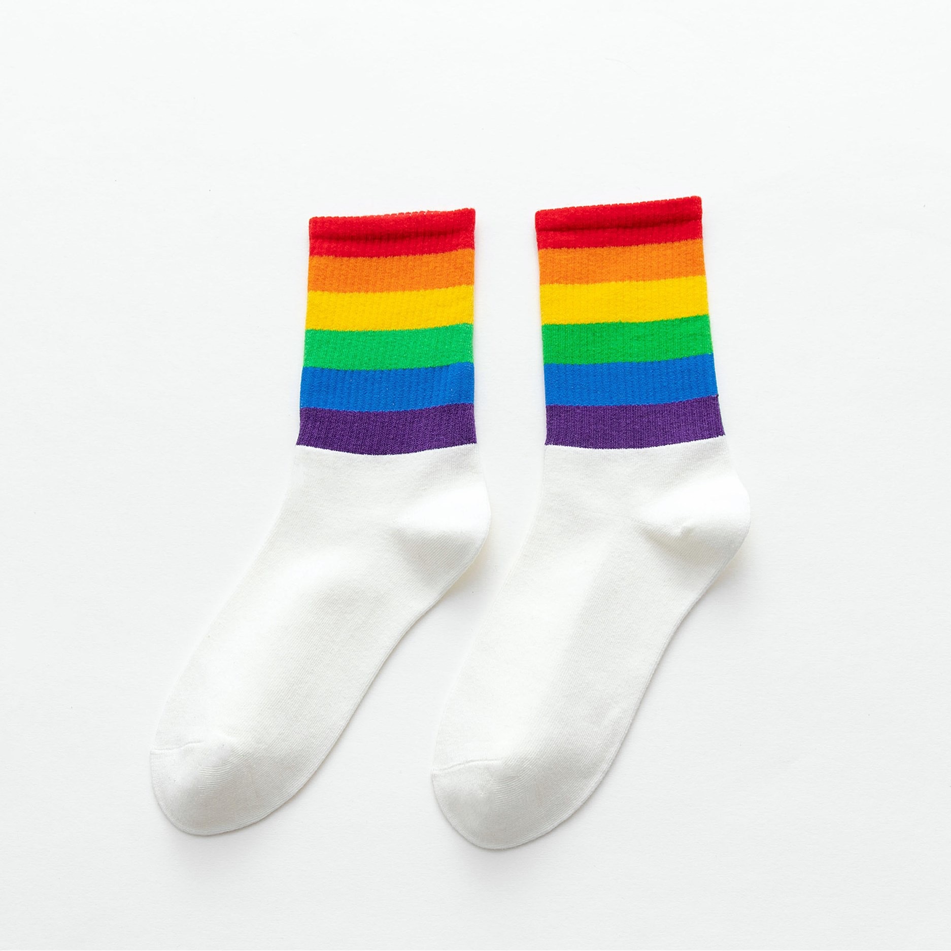 新款彩虹袜子女中筒短筒潮街头ins韩版外穿日系网红黑白色彩虹袜