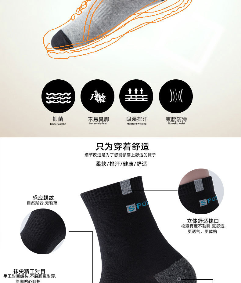 男士袜子冬季运动中筒防臭加厚秋冬款青少年非纯棉男生篮球袜ins