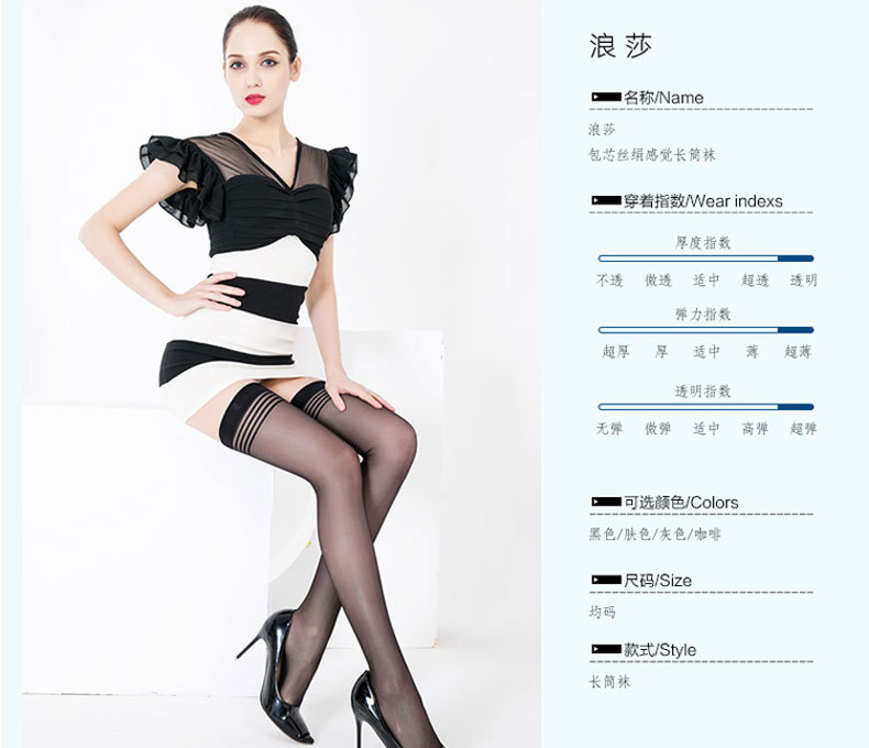 浪莎长筒丝袜女士正品高筒袜透明包芯丝防脱丝超薄款夏季长统袜子
