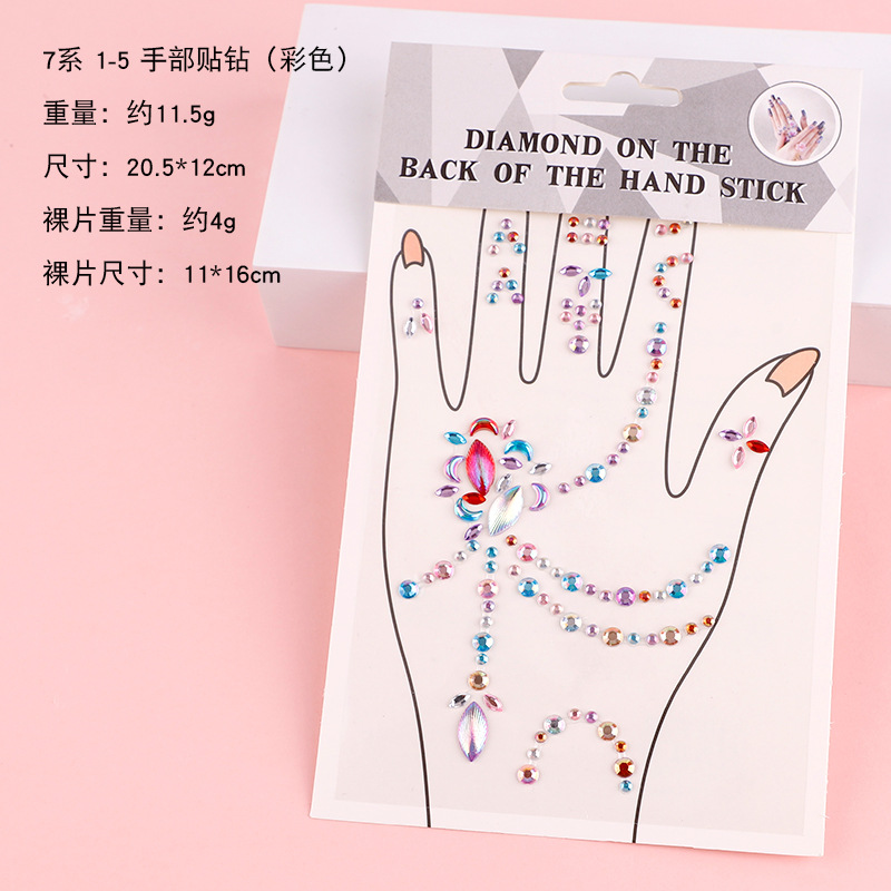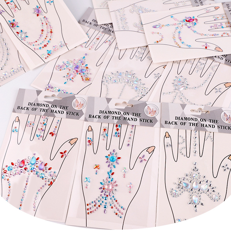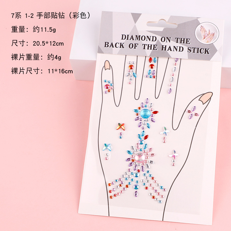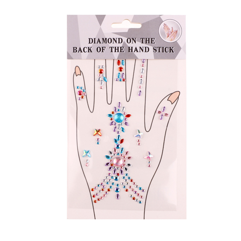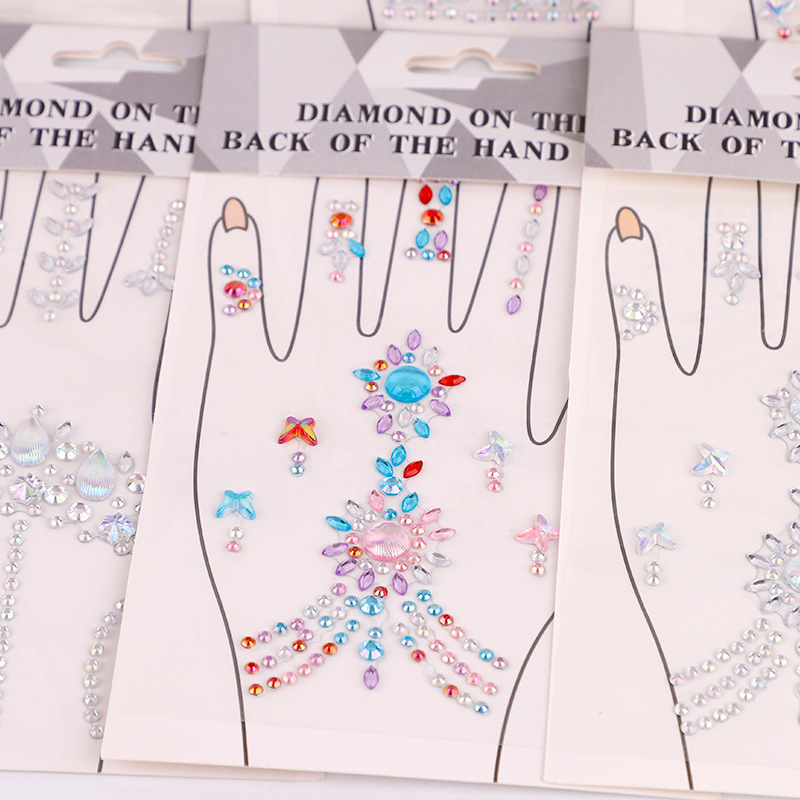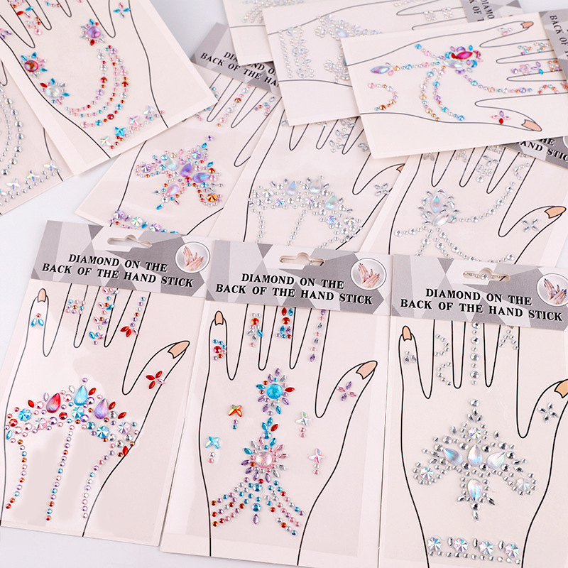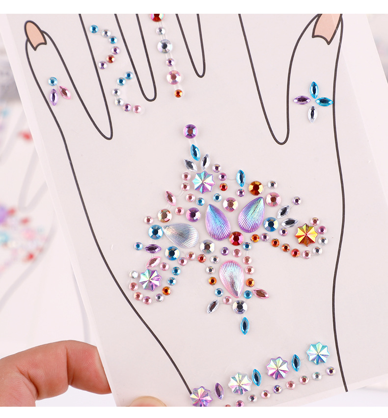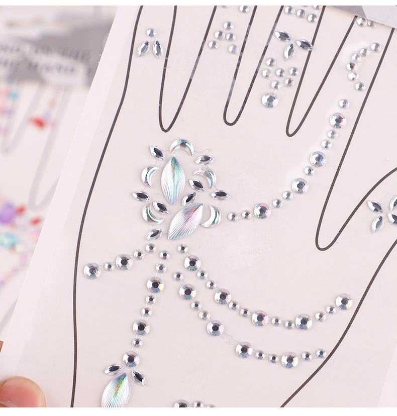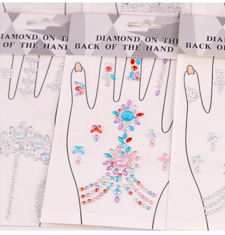 新款跨境亚克力手贴装饰贴音乐节饰品贴钻美甲指甲手部亚克力贴