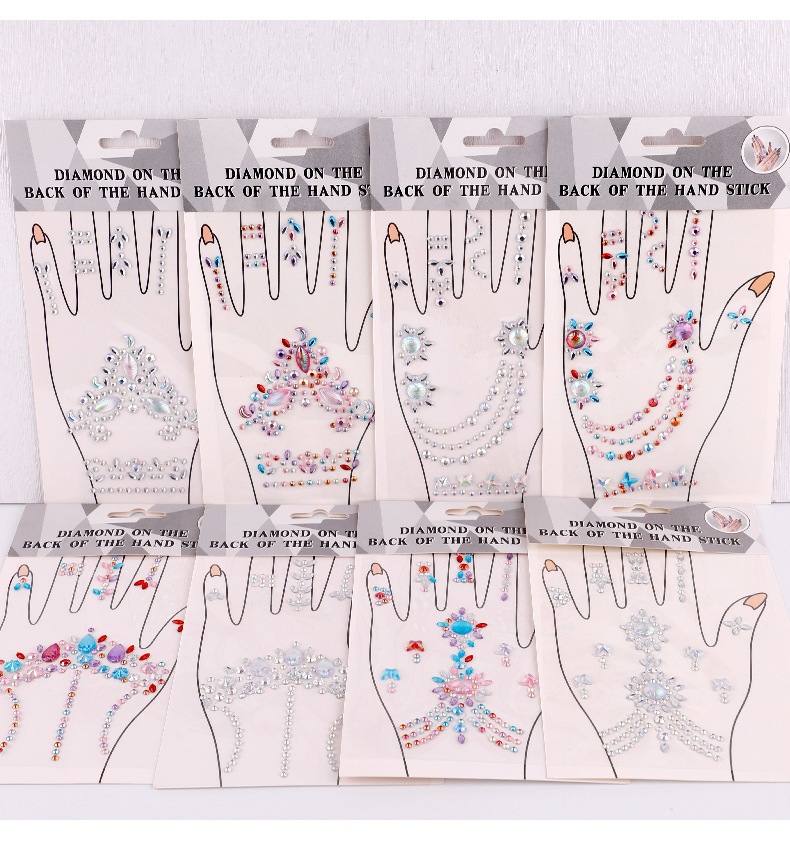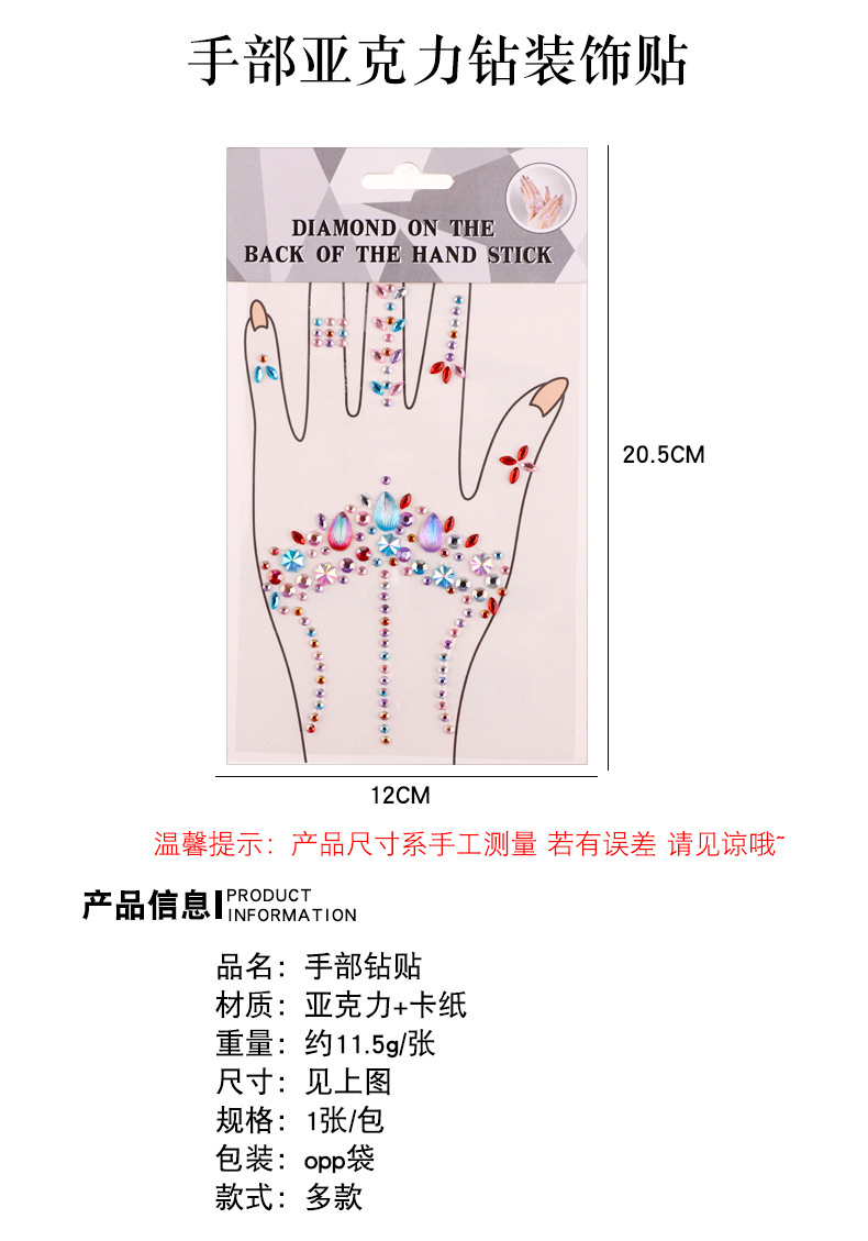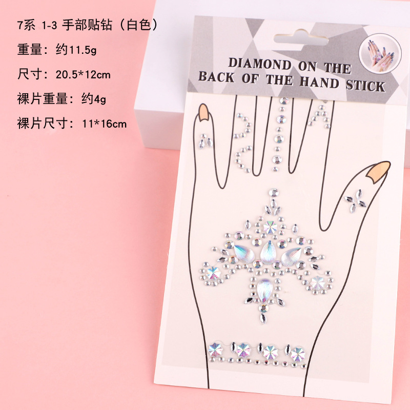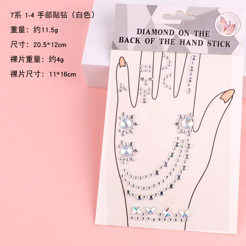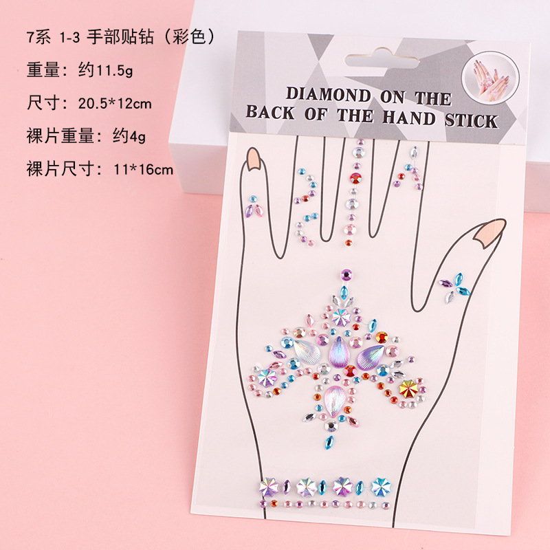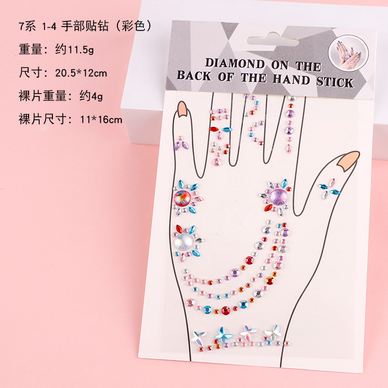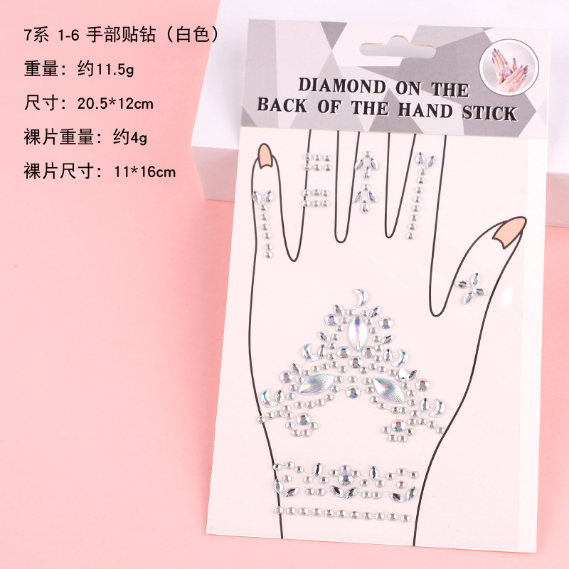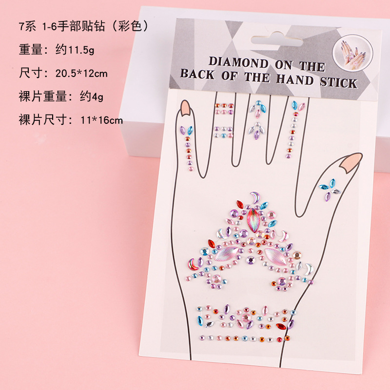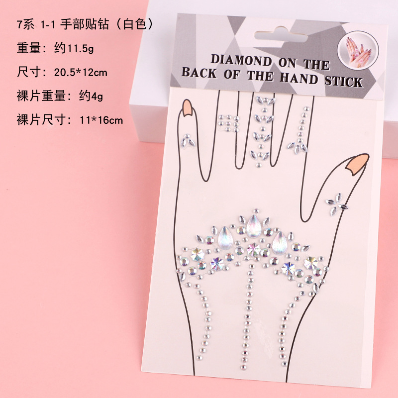 新款跨境亚克力手贴装饰贴音乐节饰品贴钻美甲指甲手部亚克力贴