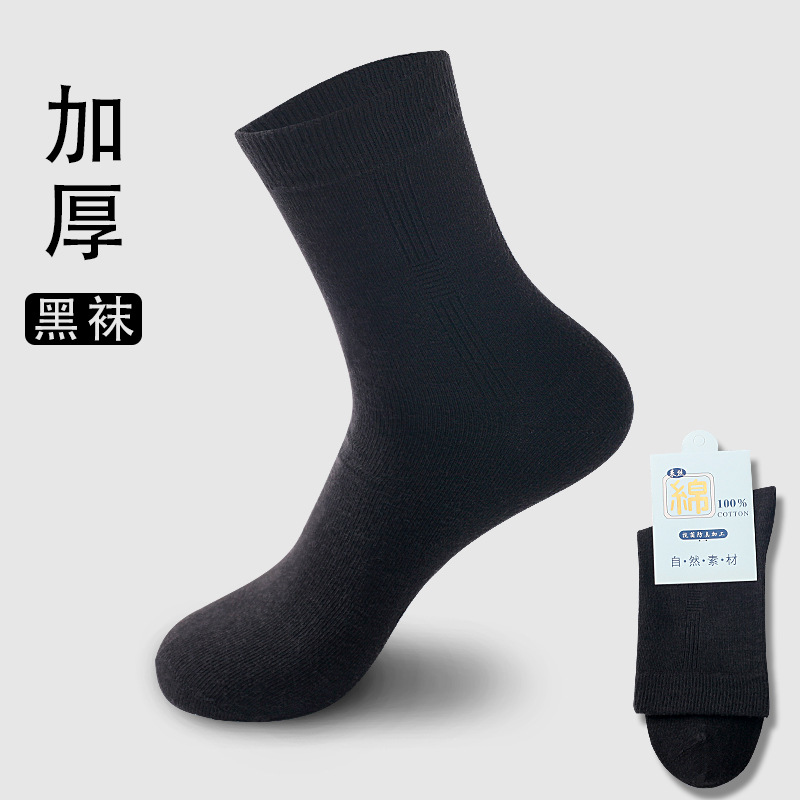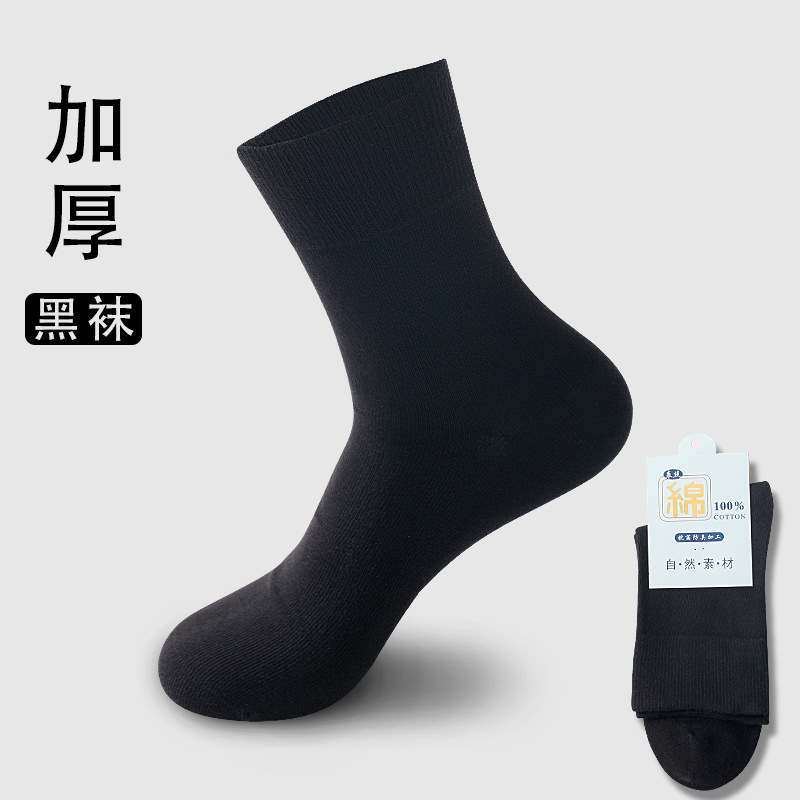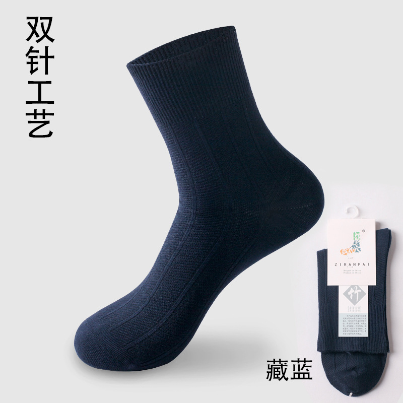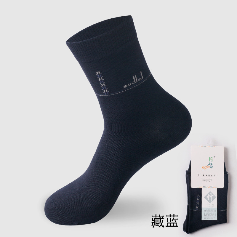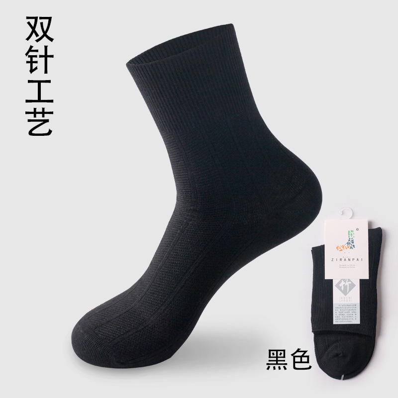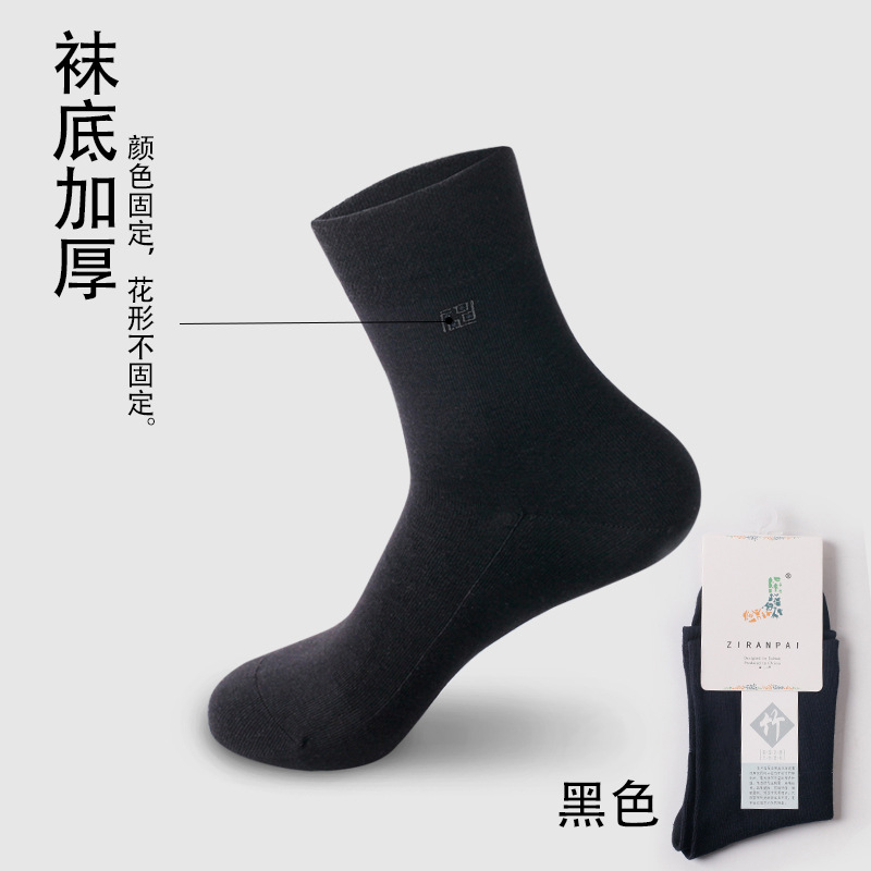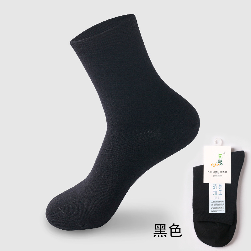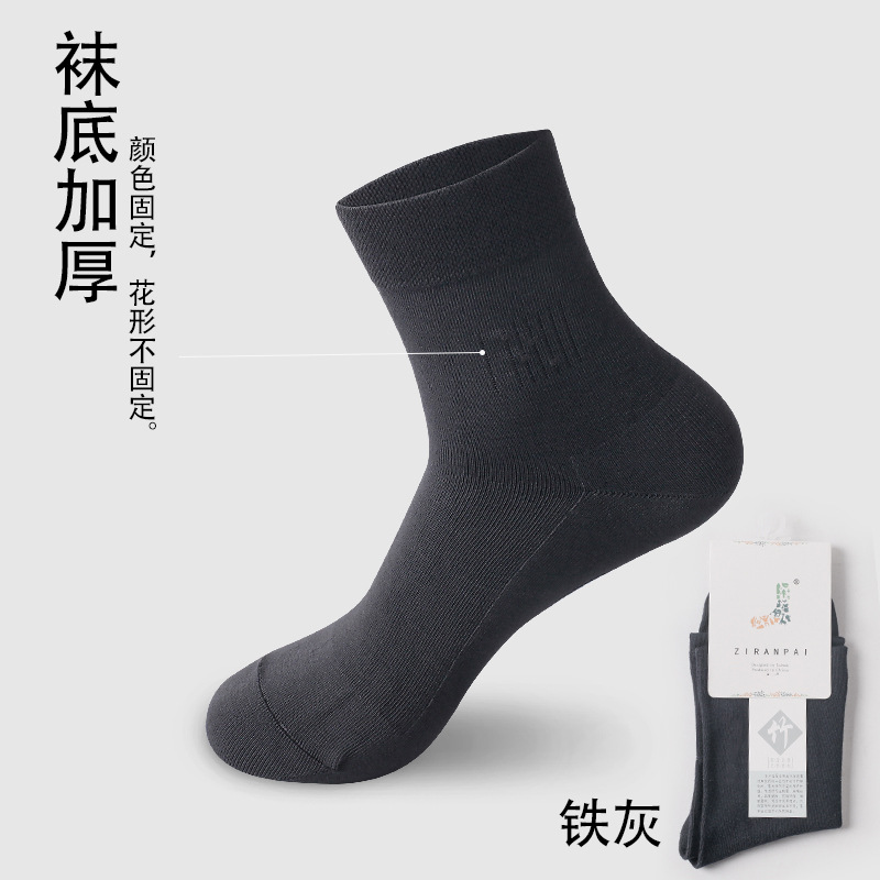 袜子男竹纤维中筒袜高级商务男袜加厚精梳棉袜纯色长袜黑白男士袜