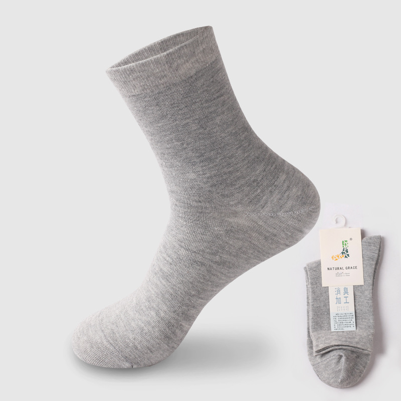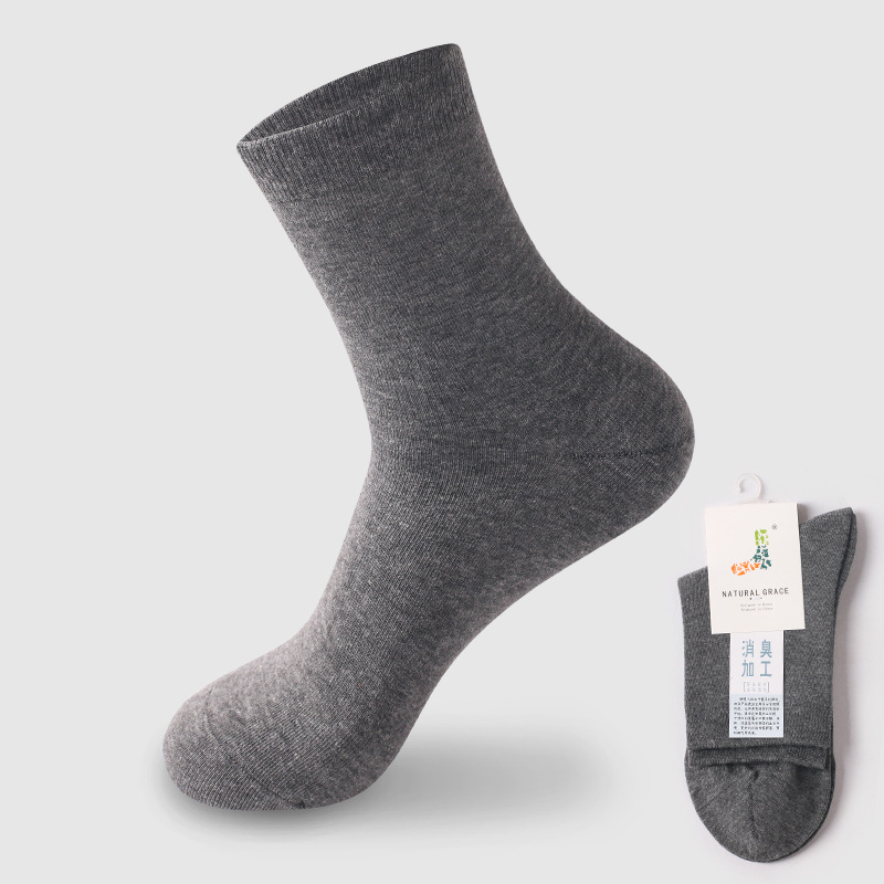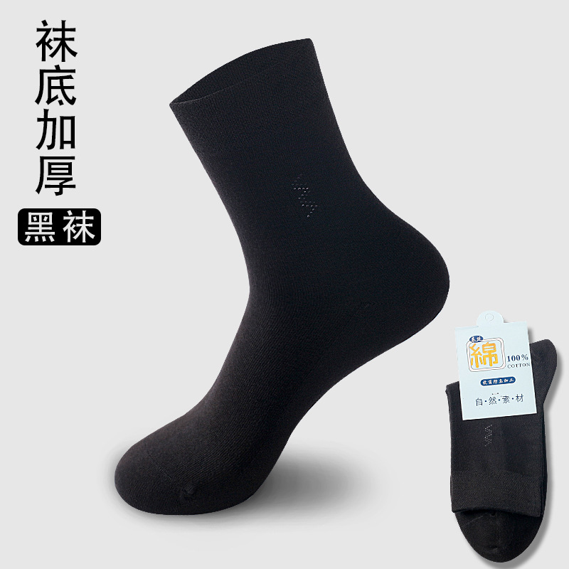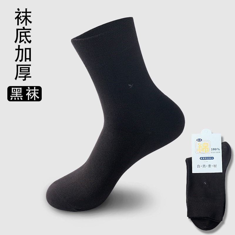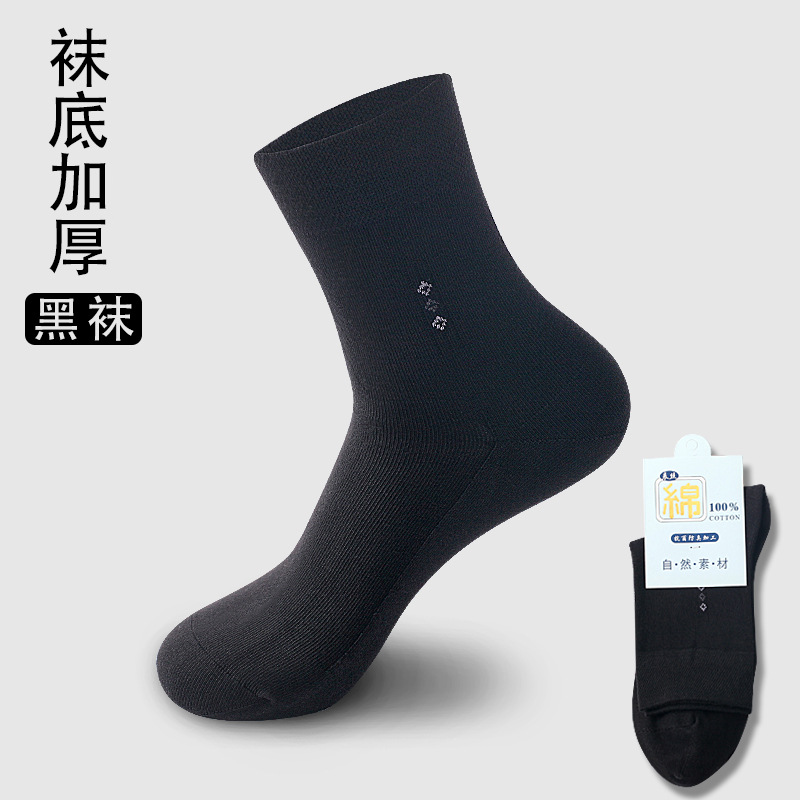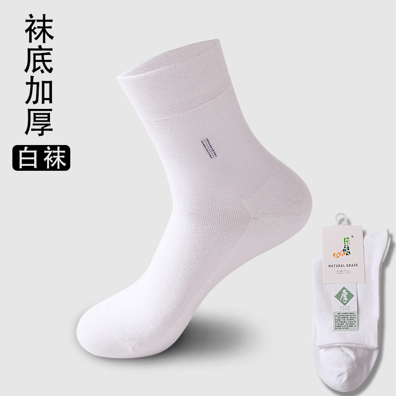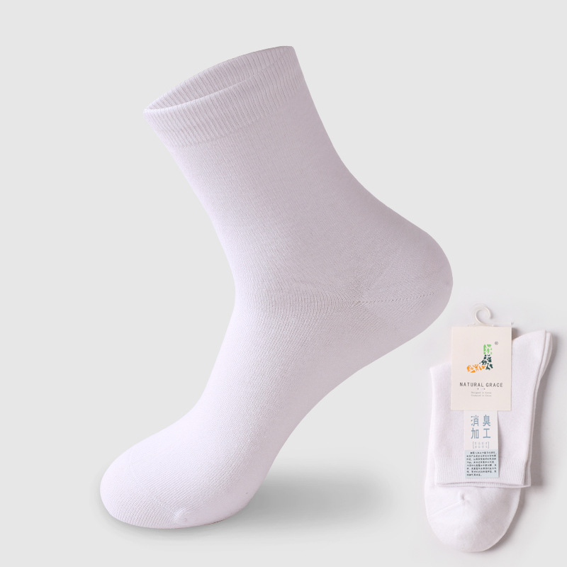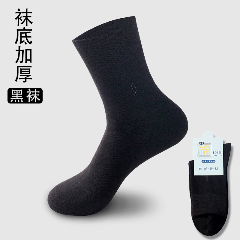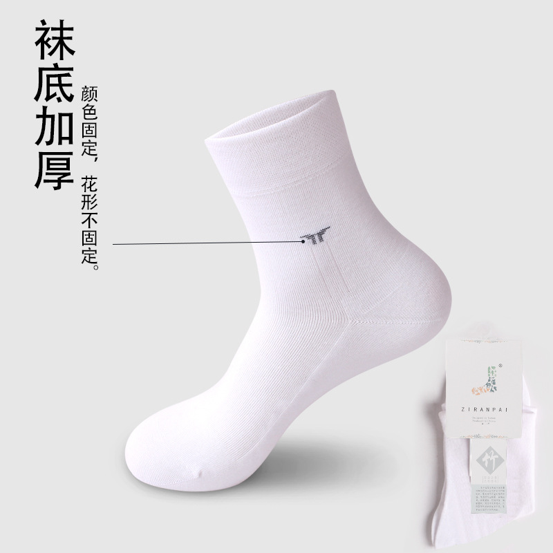 袜子男竹纤维中筒袜高级商务男袜加厚精梳棉袜纯色长袜黑白男士袜