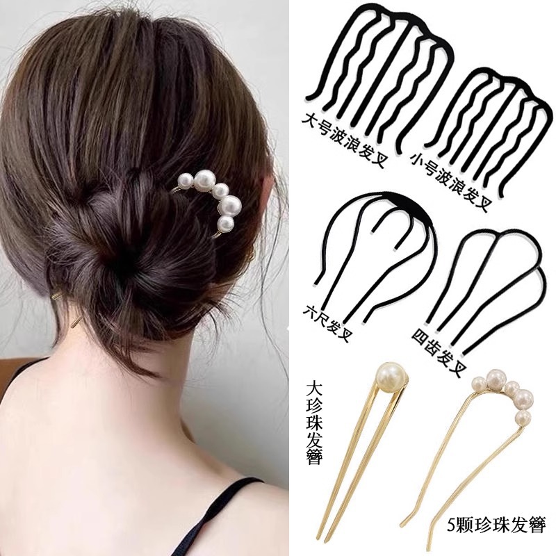 高级感U型发簪女丸子头盘发神器少女秋冬发夹后脑勺簪子发钗头饰