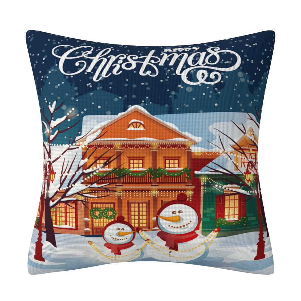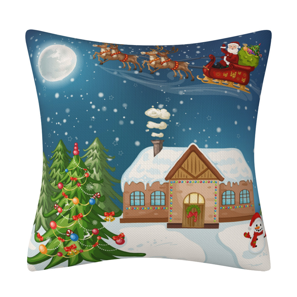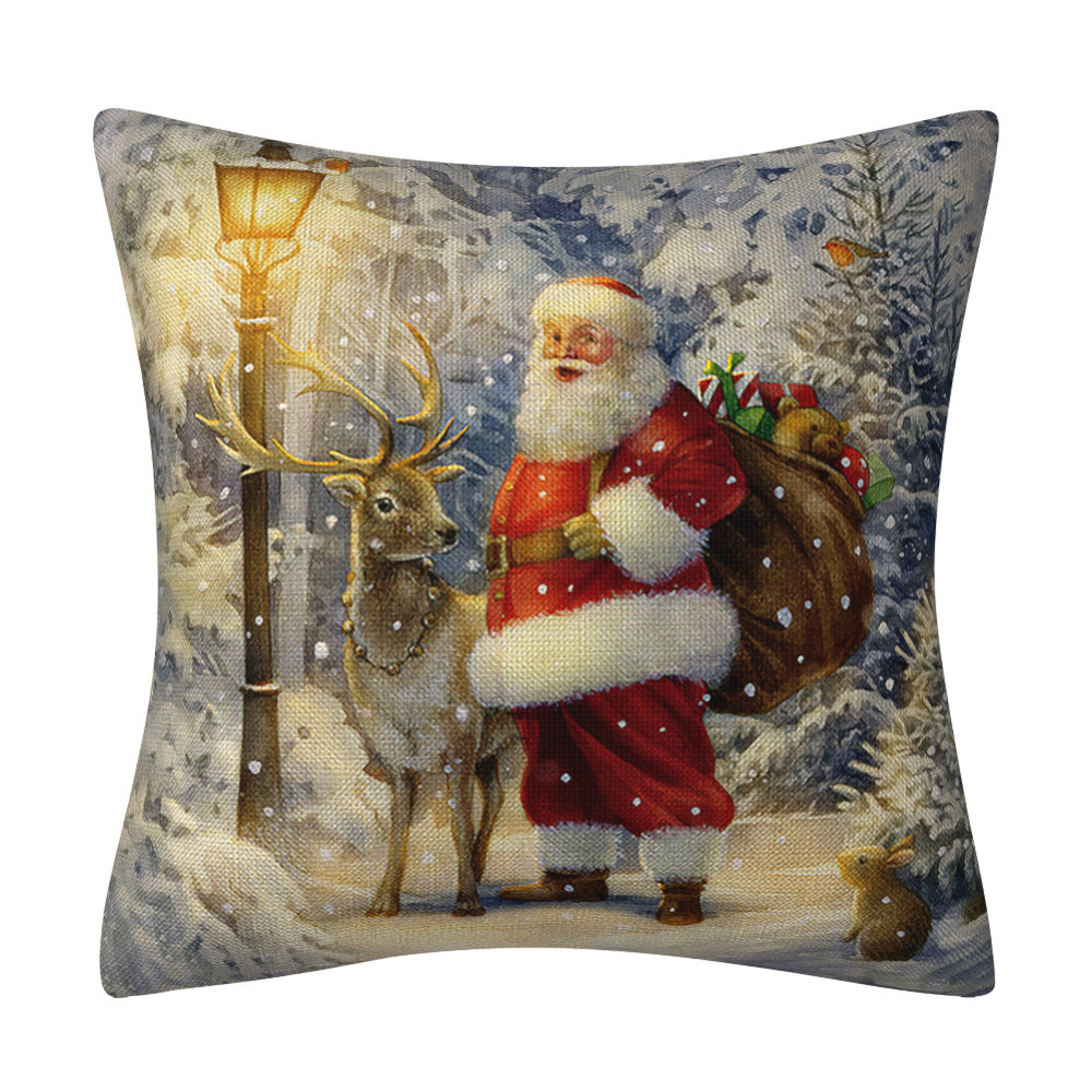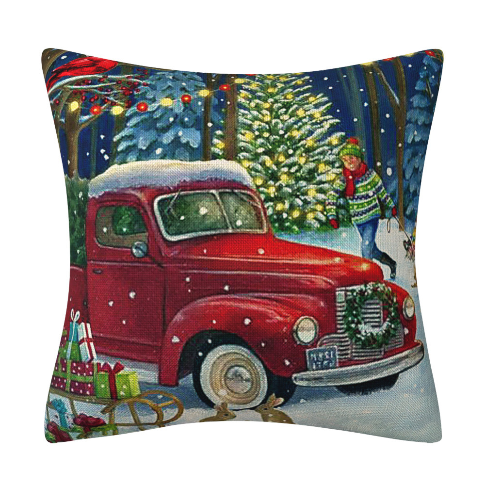 圣诞老人卡车雪景亚麻抱枕套 亚马逊欧美节日家居装饰靠枕靠垫套