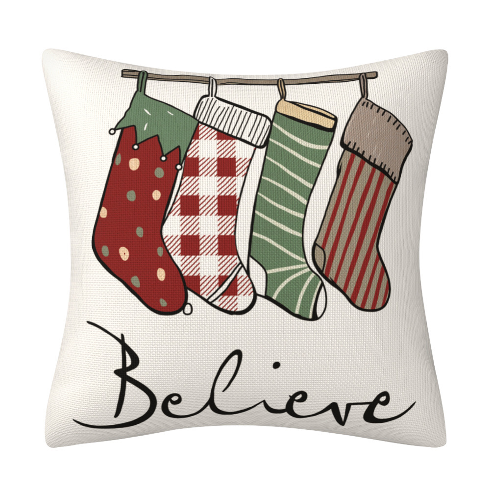 跨境新款圣诞抱枕套铃铛圣诞树袜子小矮人装饰靠枕靠垫亚马逊家居