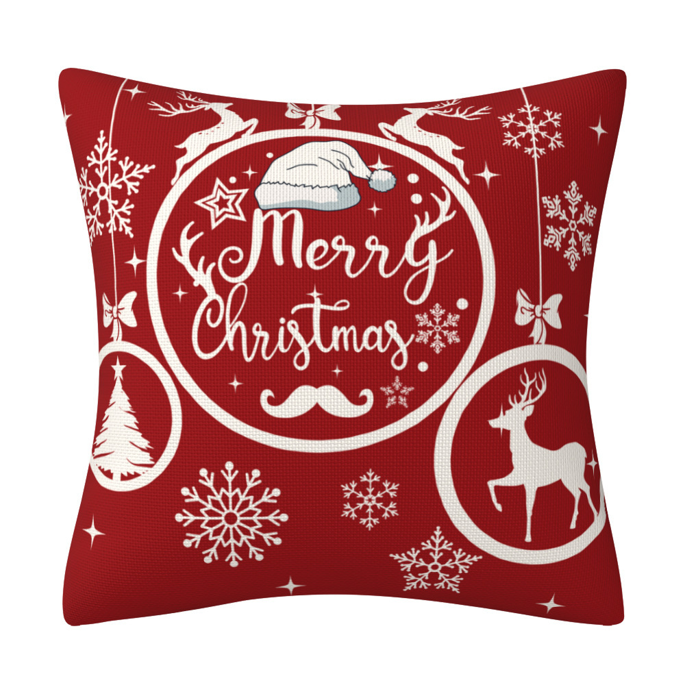跨境新款圣诞抱枕套亚麻 雪花铃铛圣诞树装饰靠枕垫套亚马逊家居