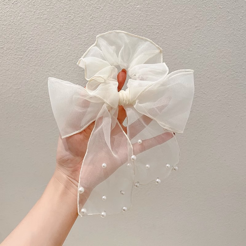 丝巾发带女绑发珍珠蝴蝶结飘带外出百搭头绳2022年夏季新款发饰