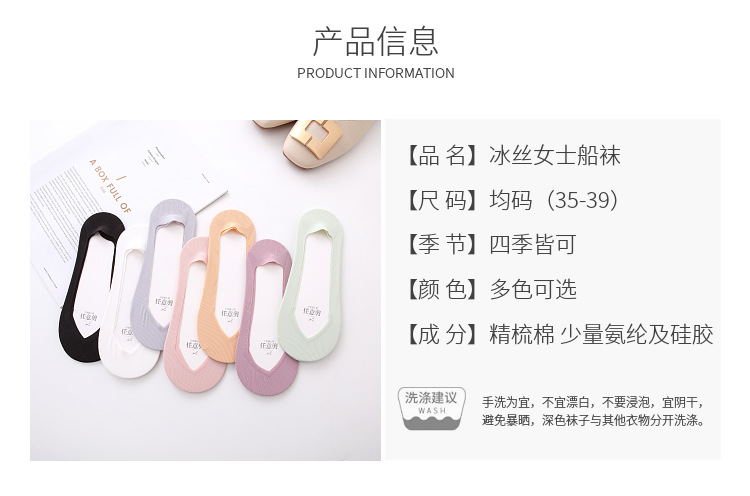 春夏季任意剪冰丝船袜女浅口不掉跟纯色隐形袜硅胶防滑棉底袜批发