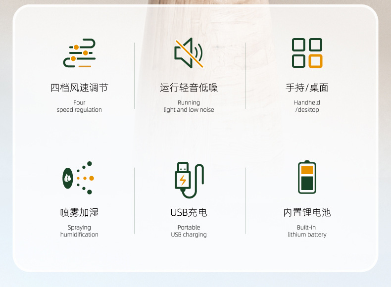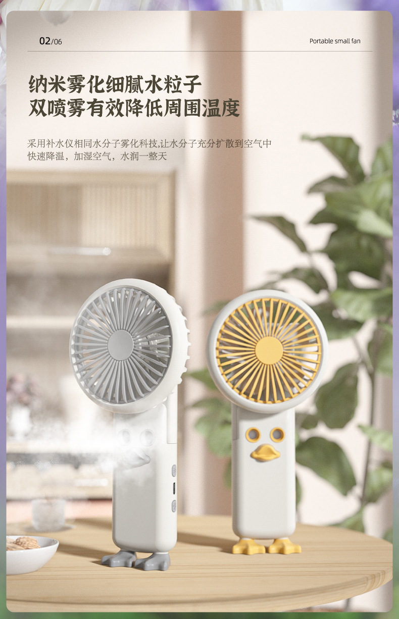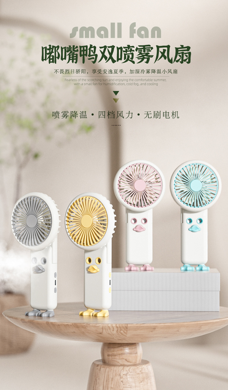 24年新双喷雾手持小风扇无刷电机静音桌面风扇USB充电式便携风扇
