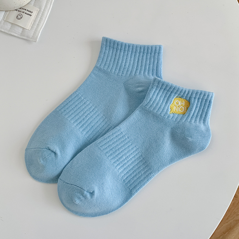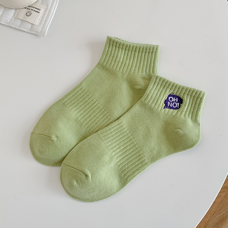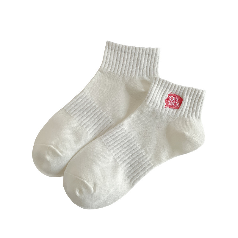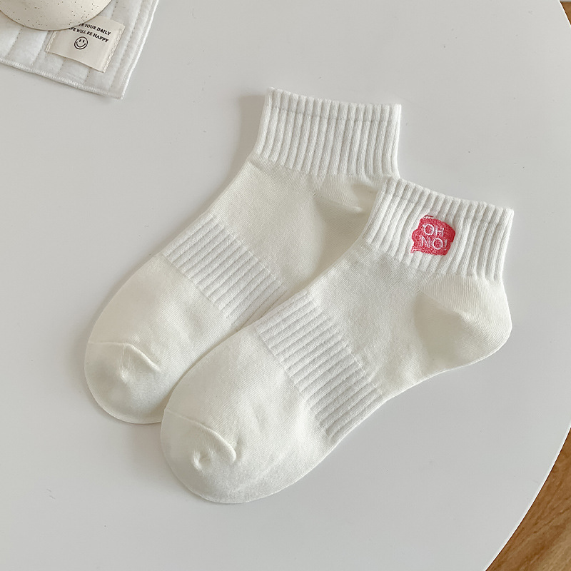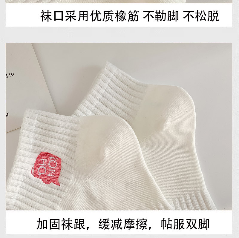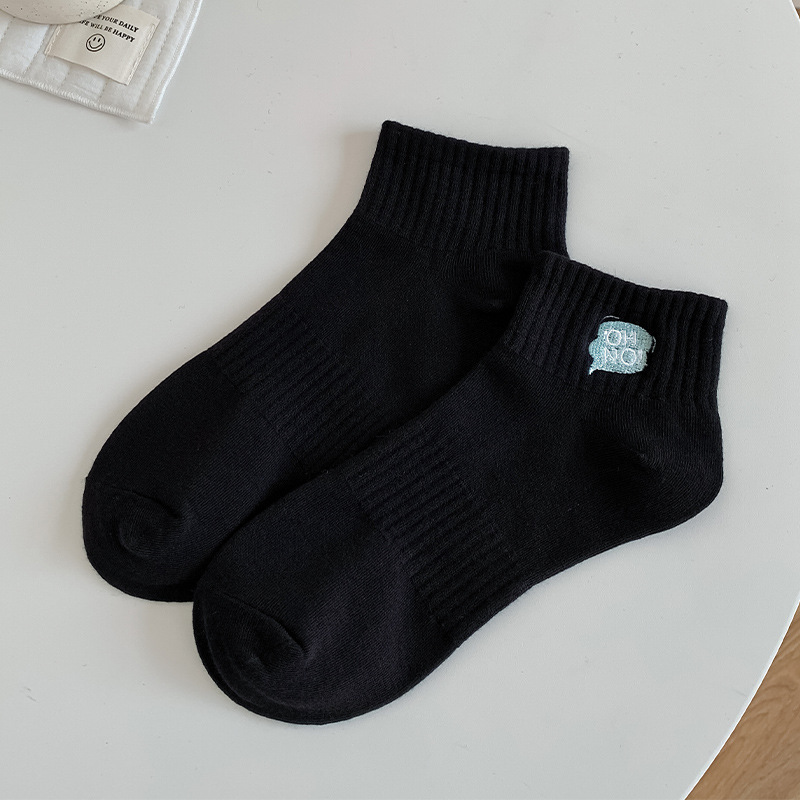刺绣袜子女生短袜ins潮春天夏季薄款运动棉袜纯黑白色中筒袜批发