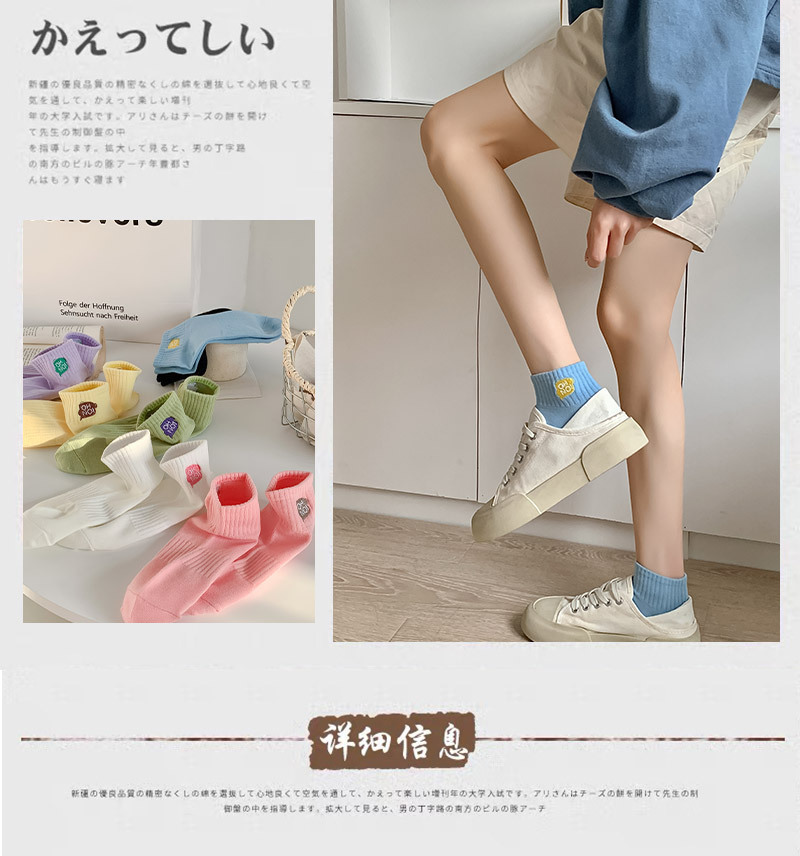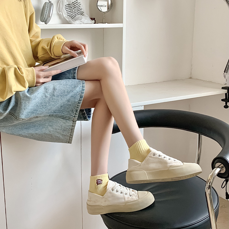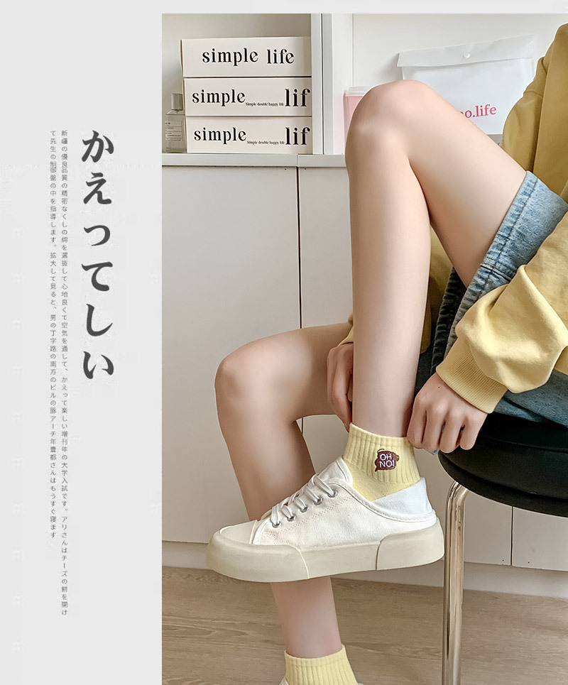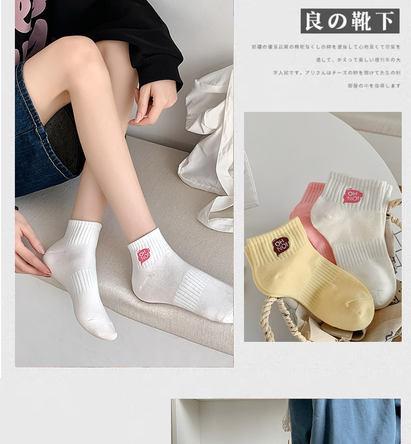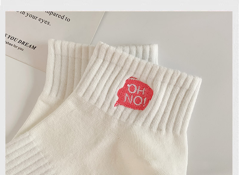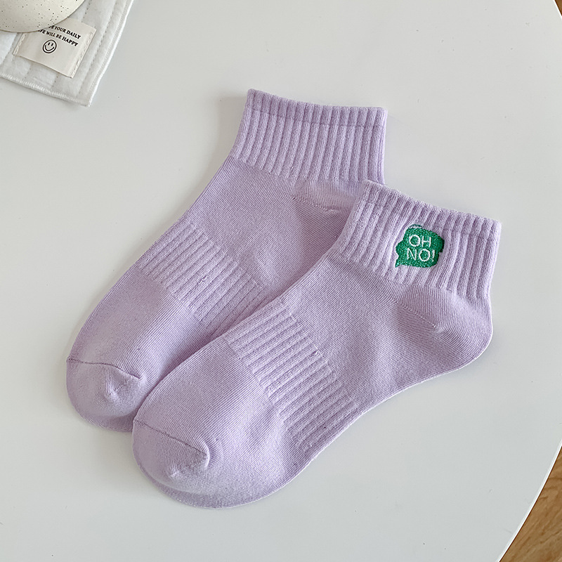 刺绣袜子女生短袜ins潮春天夏季薄款运动棉袜纯黑白色中筒袜批发