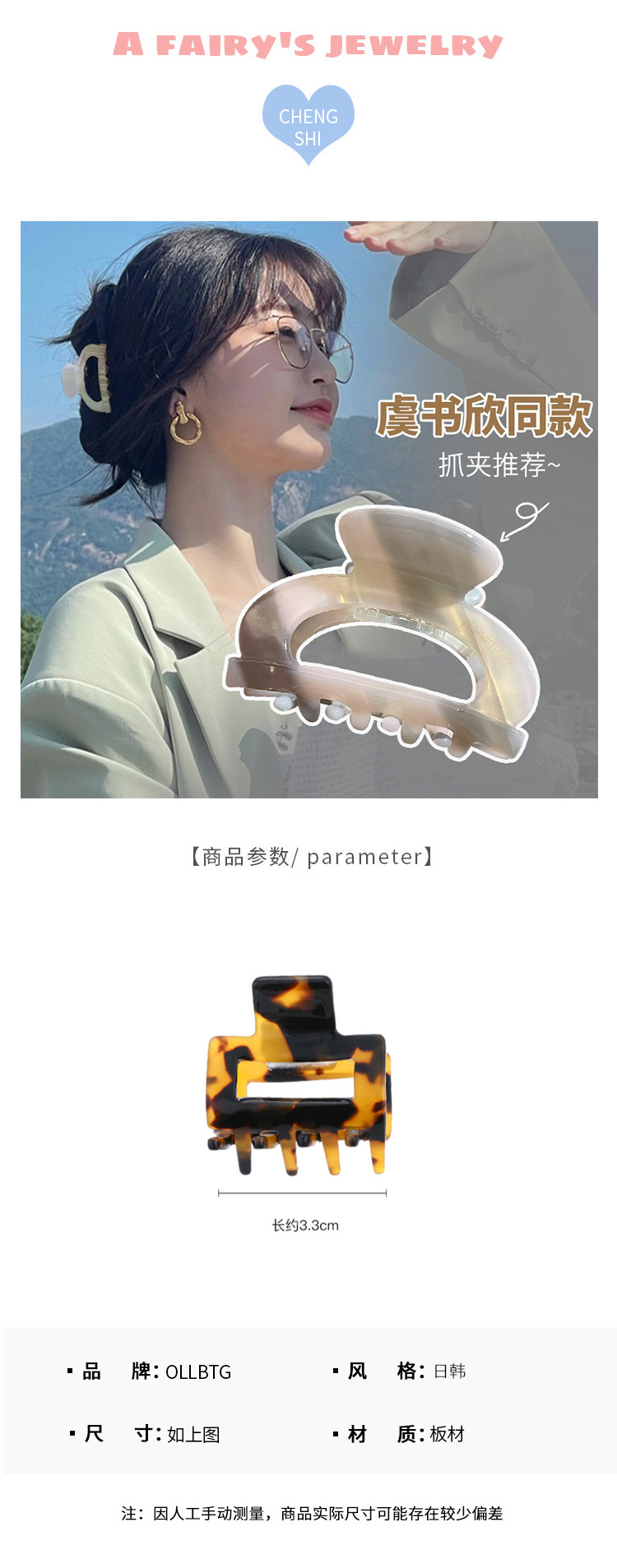 顶楼周锡京同款醋酸抓夹女夏季后脑勺发夹2023新款鲨鱼夹头饰发卡