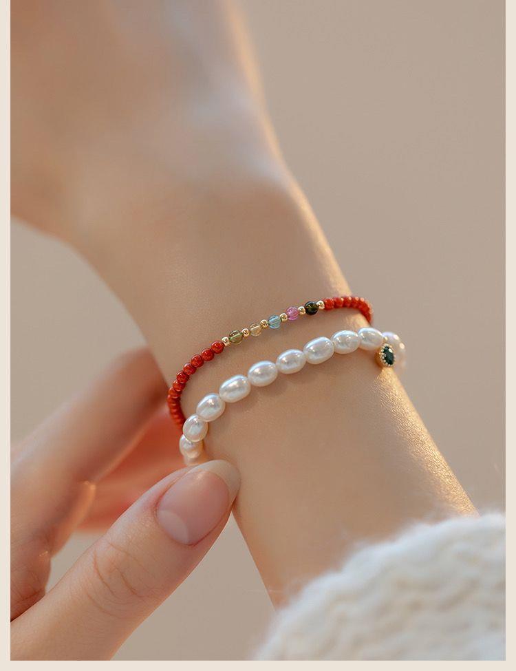 新款网红直播同款极细南红玛瑙手链14K包金七彩碧玺闺蜜学生手串