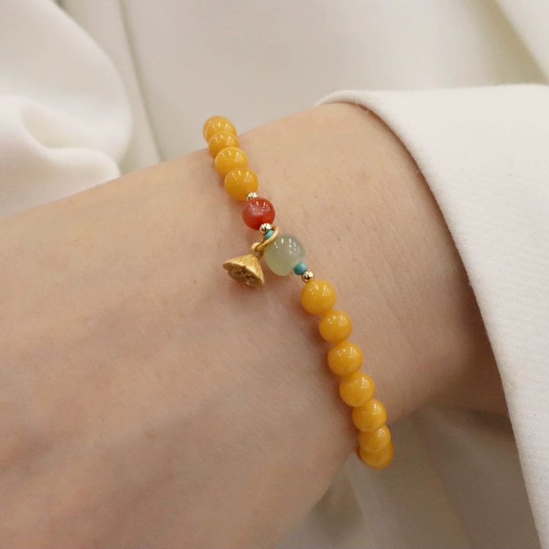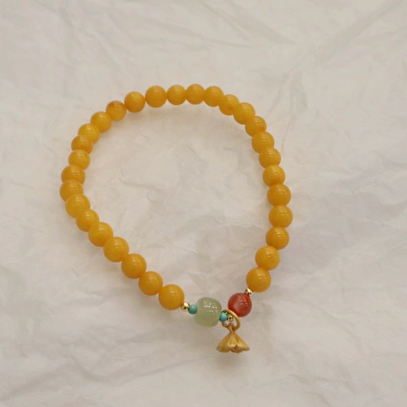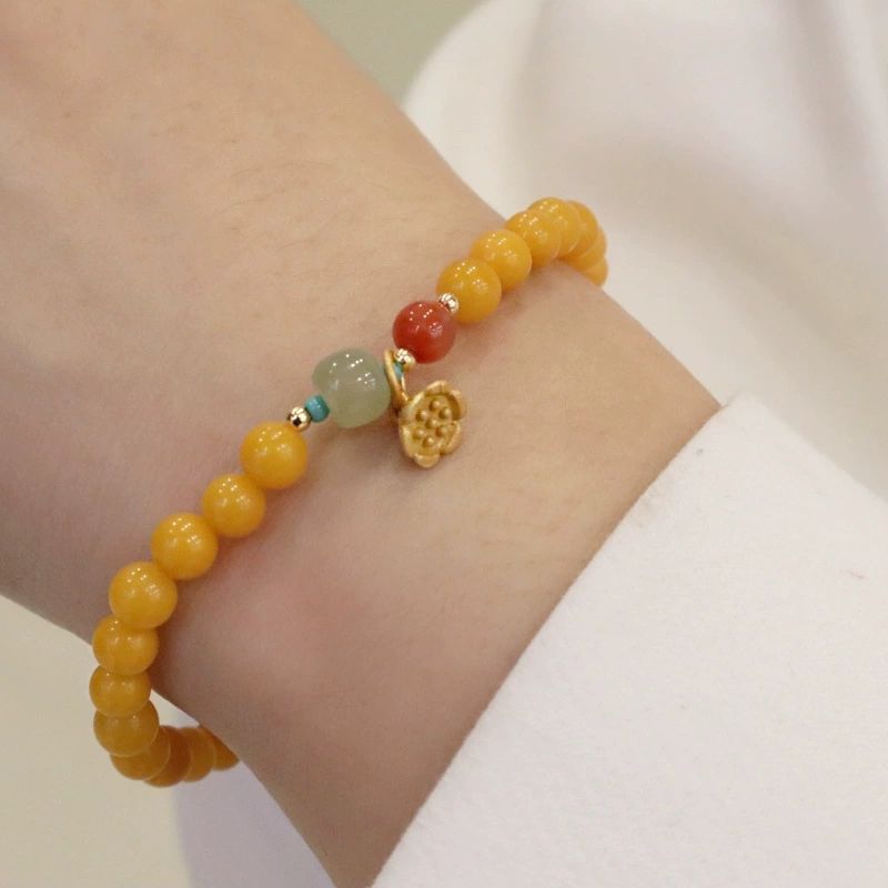新款网红直播同款时尚蜜蜡手链圆珠洋气古法金莲蓬南红手串小清新