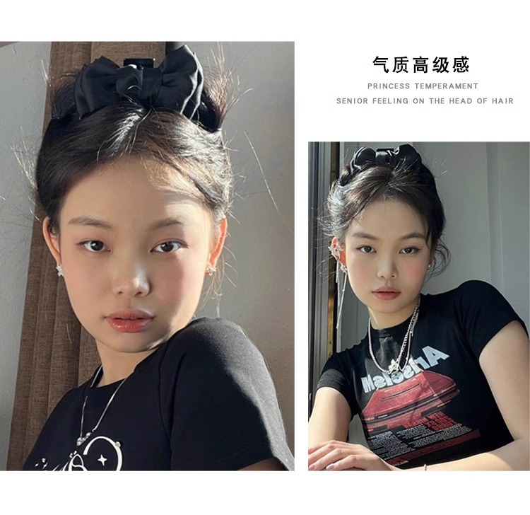 黑色双面蝴蝶结公主头发后脑勺夹女大号发卡发饰发夹鲨鱼夹子头饰