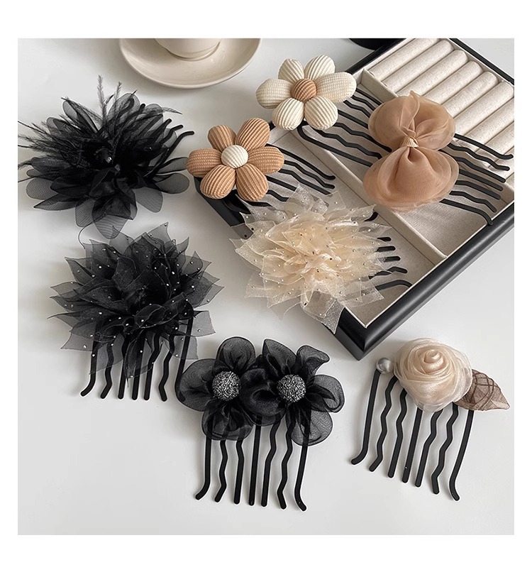 懒人花朵盘发神器2024新款插梳女丸子头固定发插倒插发卡u型发夹
