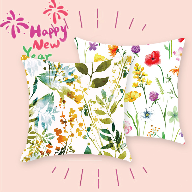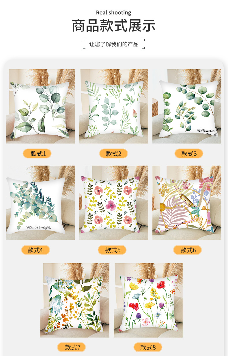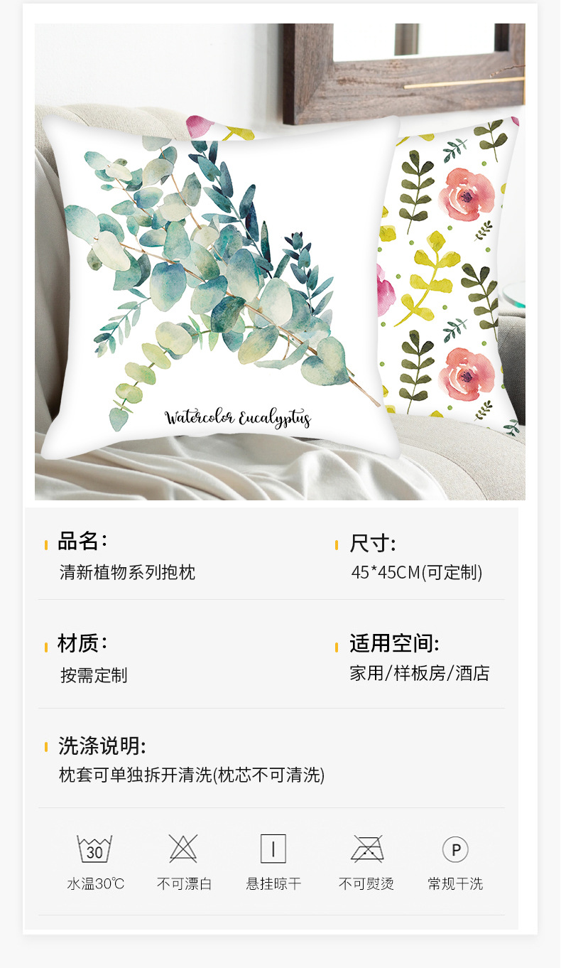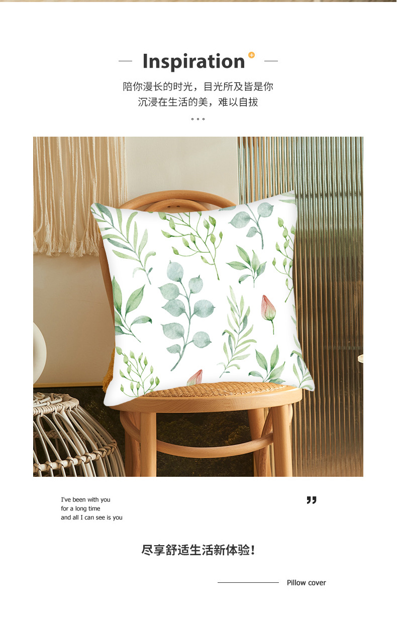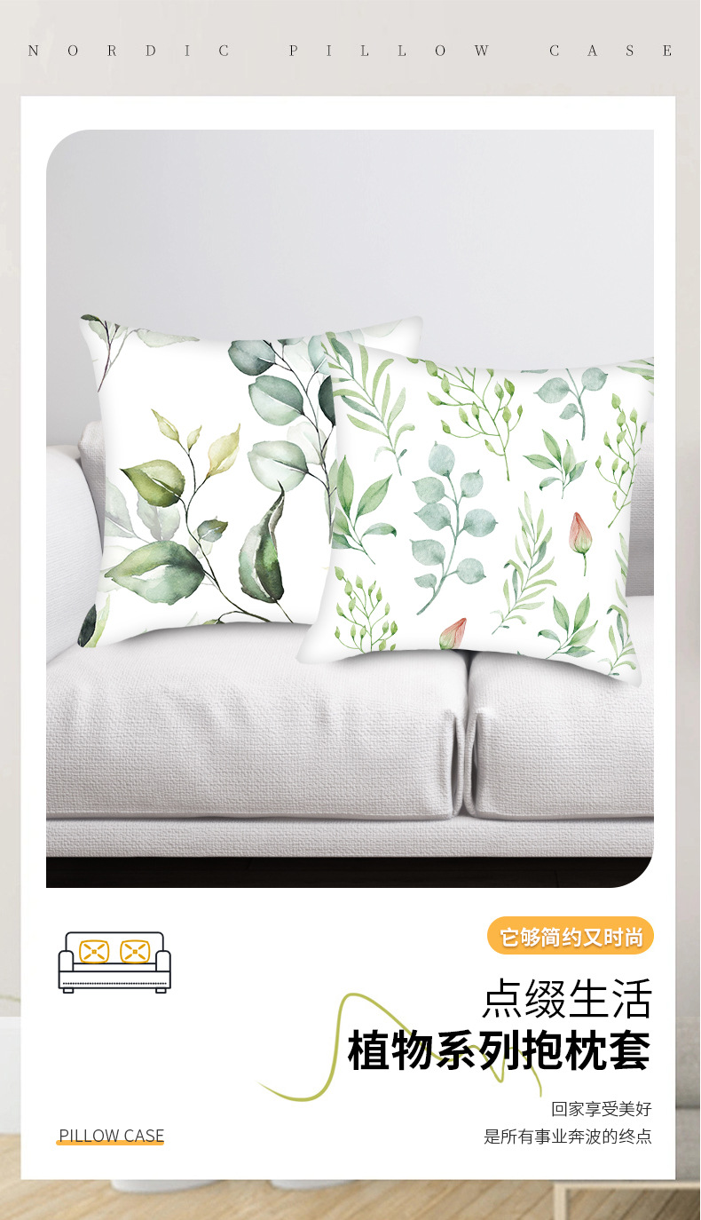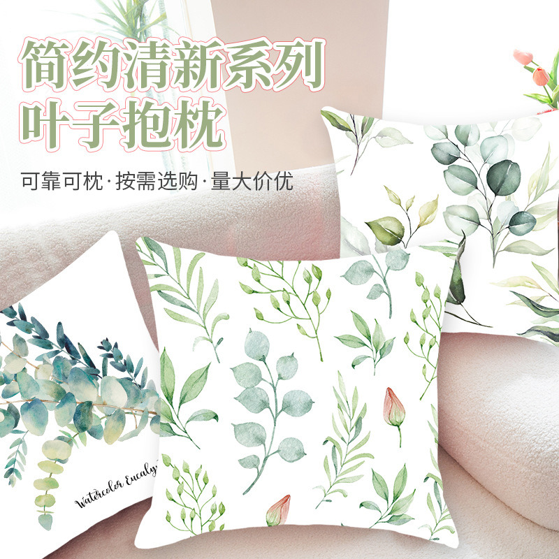 跨境沙发卧室客厅靠背抱枕套批发 小清新绿色叶子植物抱枕靠垫套