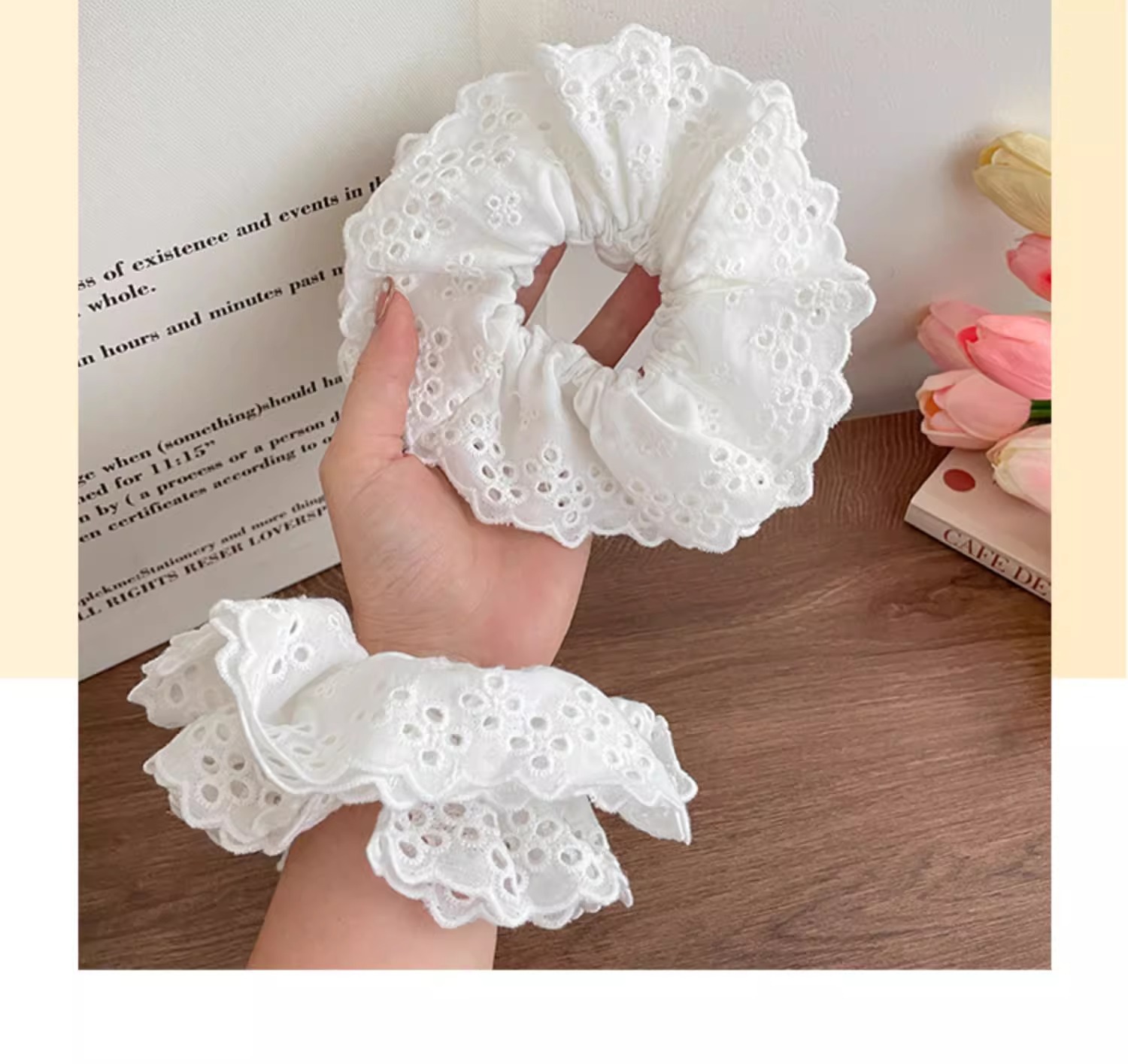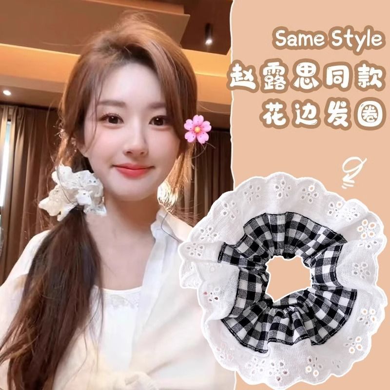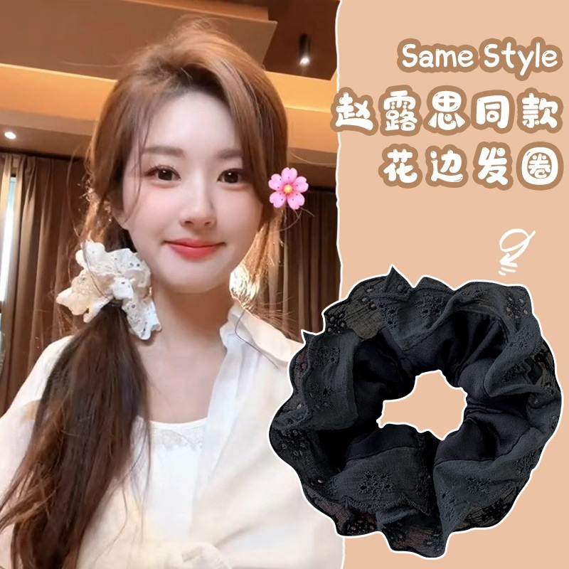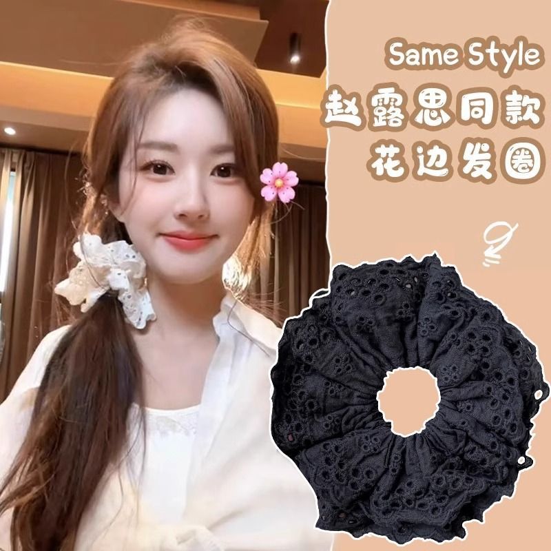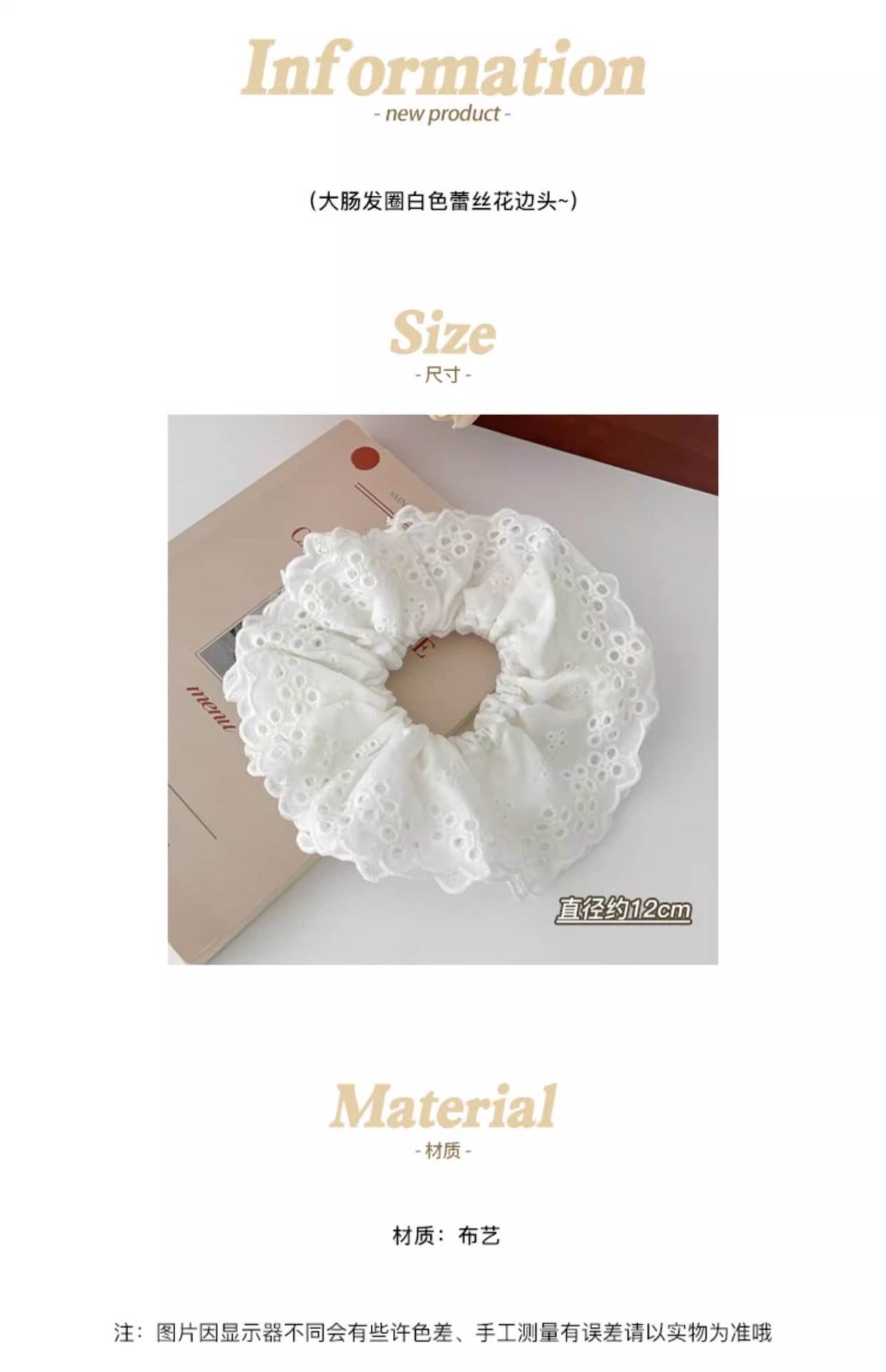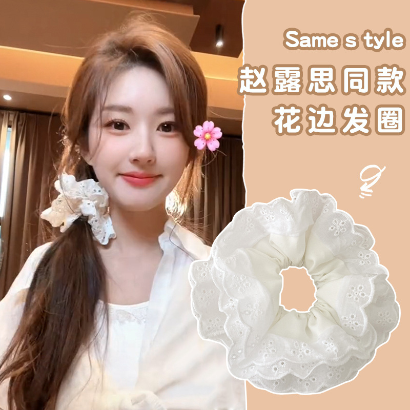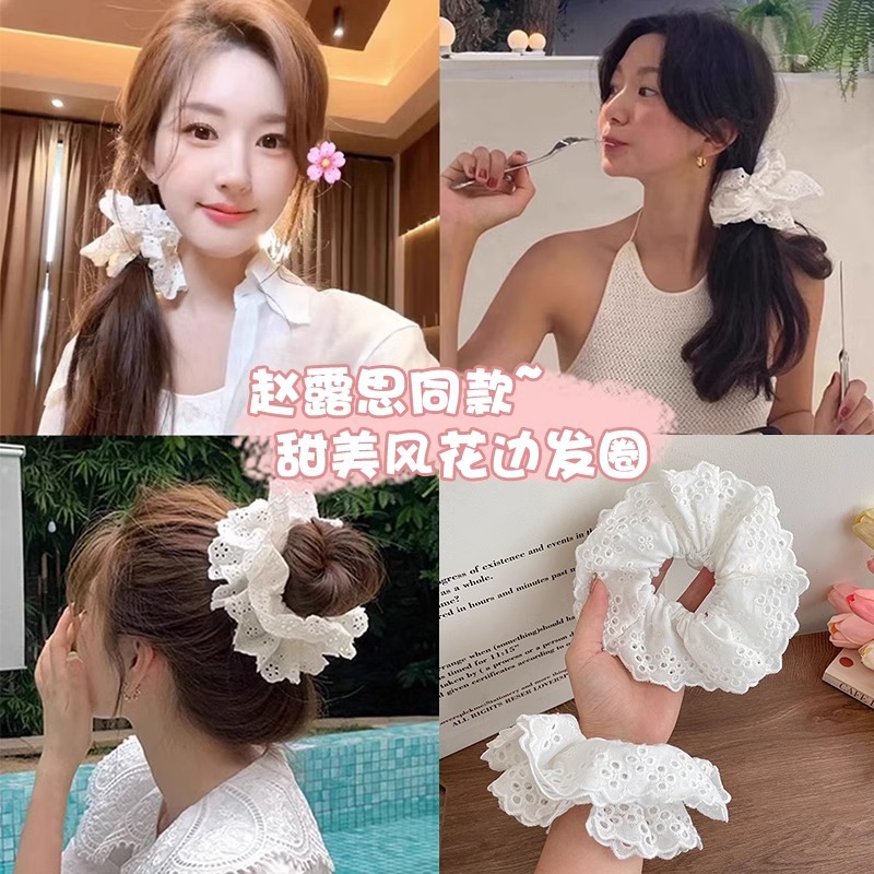 赵露思同款白色蕾丝花边大肠发圈头花温柔甜美扎头发头绳发饰发绳