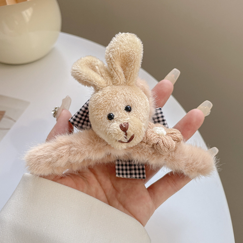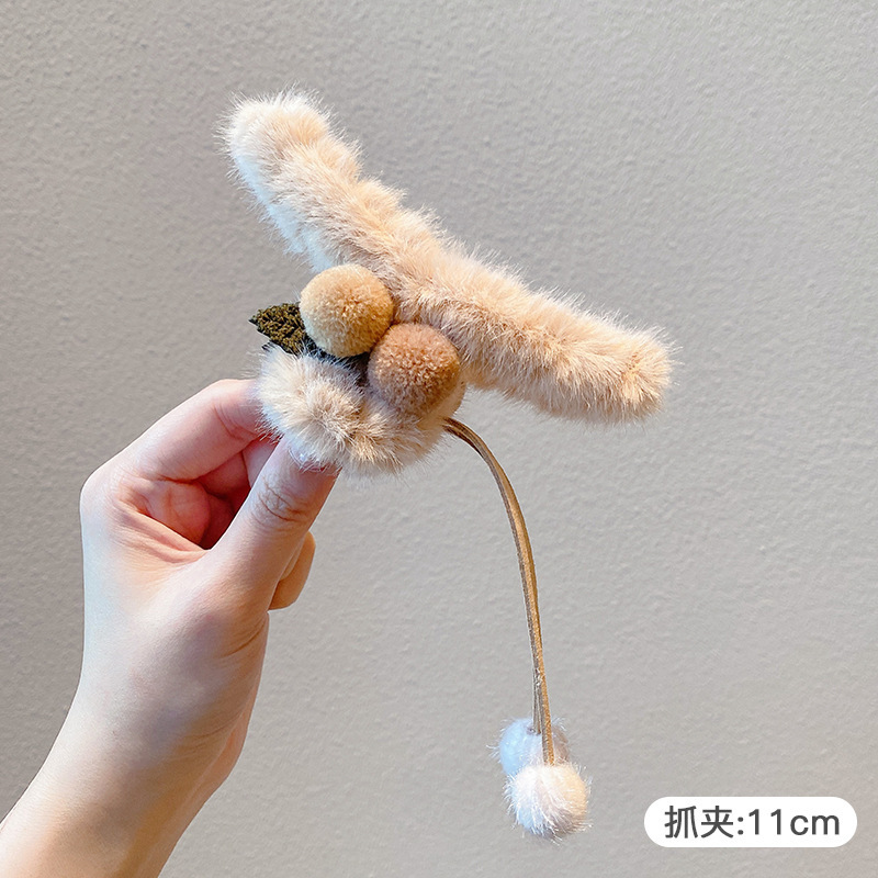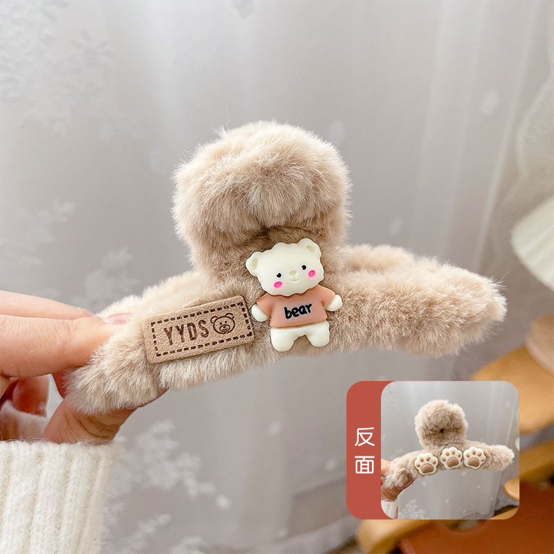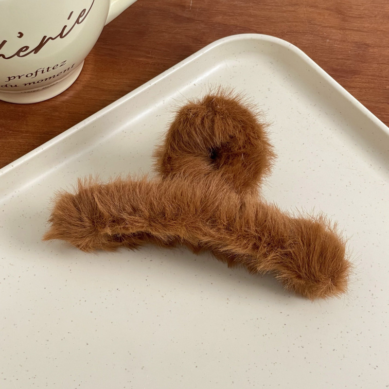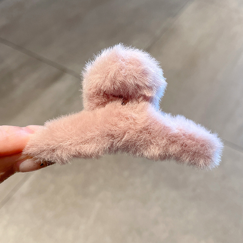 大号毛绒抓夹发夹女秋冬2023新款高级感后脑勺头发夹子头饰鲨鱼夹