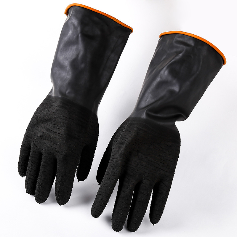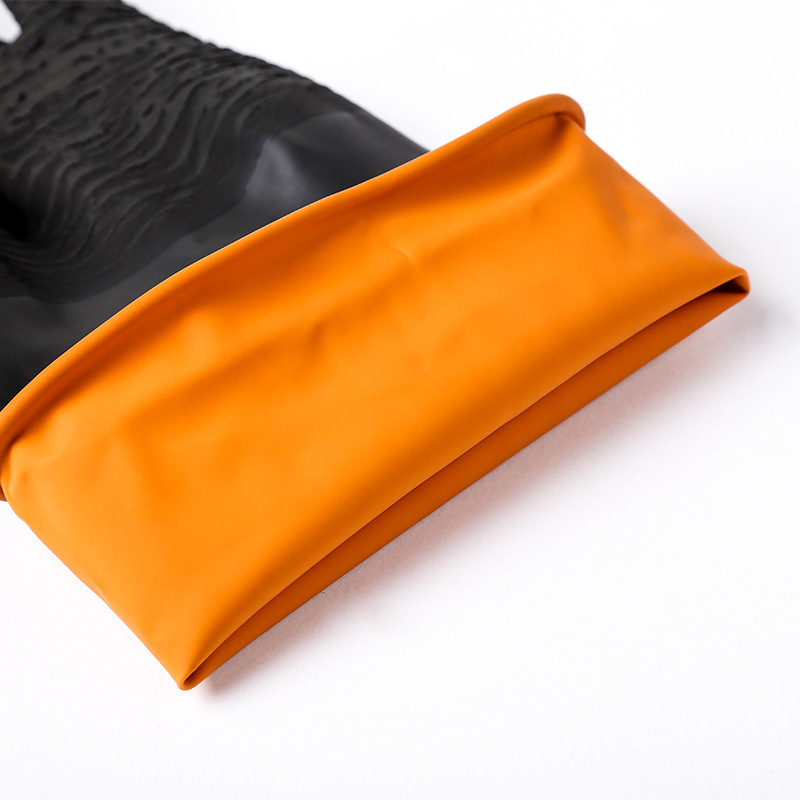 新款皱纹光里化工手套外黑里桔工业手套耐脏清洁手套180克手套