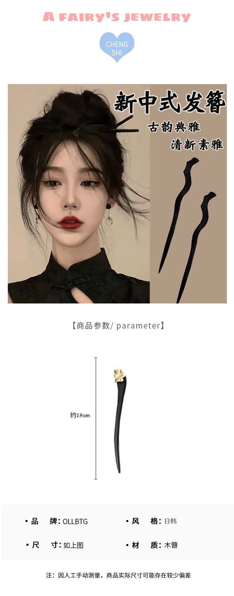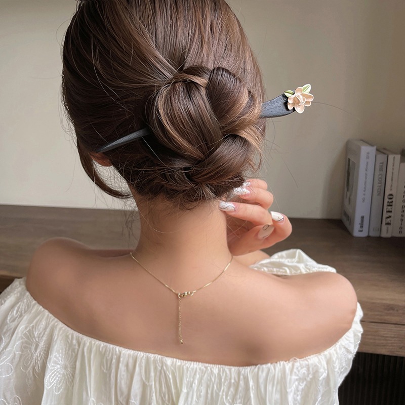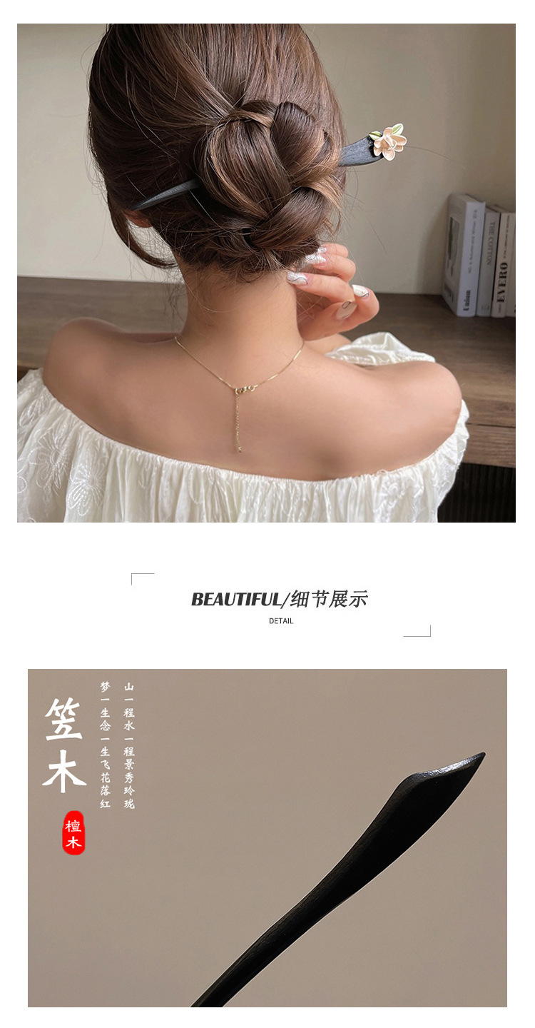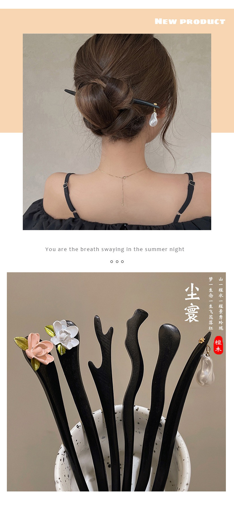 新中式黑檀木古风盘发发簪女简约现代簪子旗袍配饰高级感古装头饰