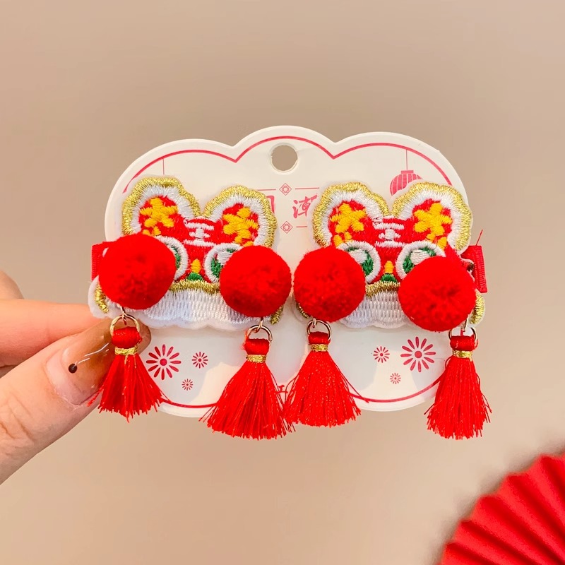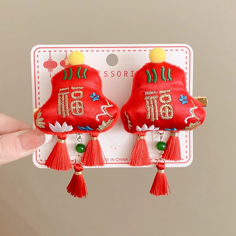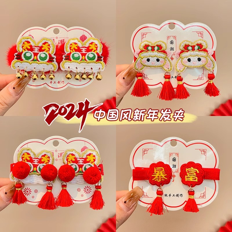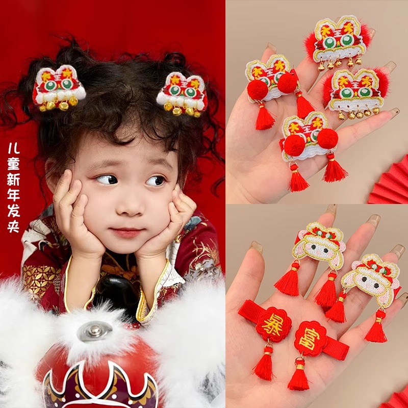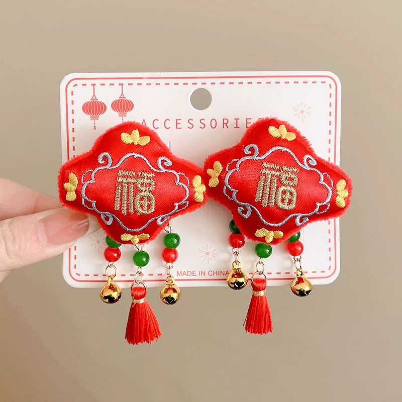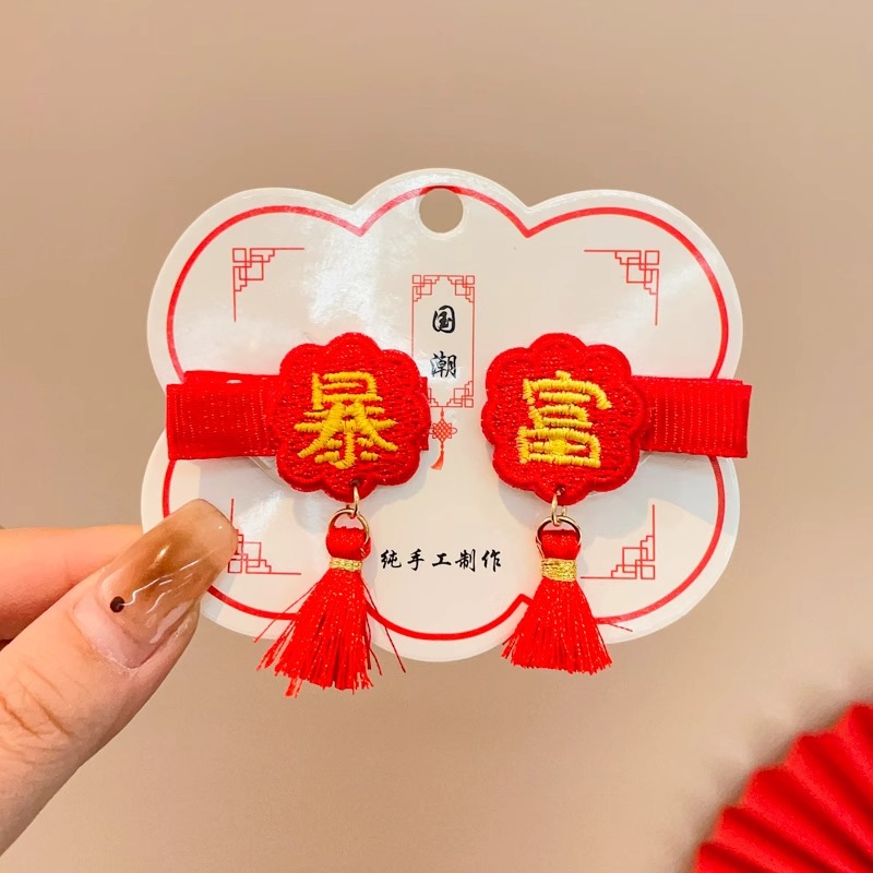 红色喜庆暴富发夹新年发饰儿童刘海夹女童宝宝发卡中国风过年对夹