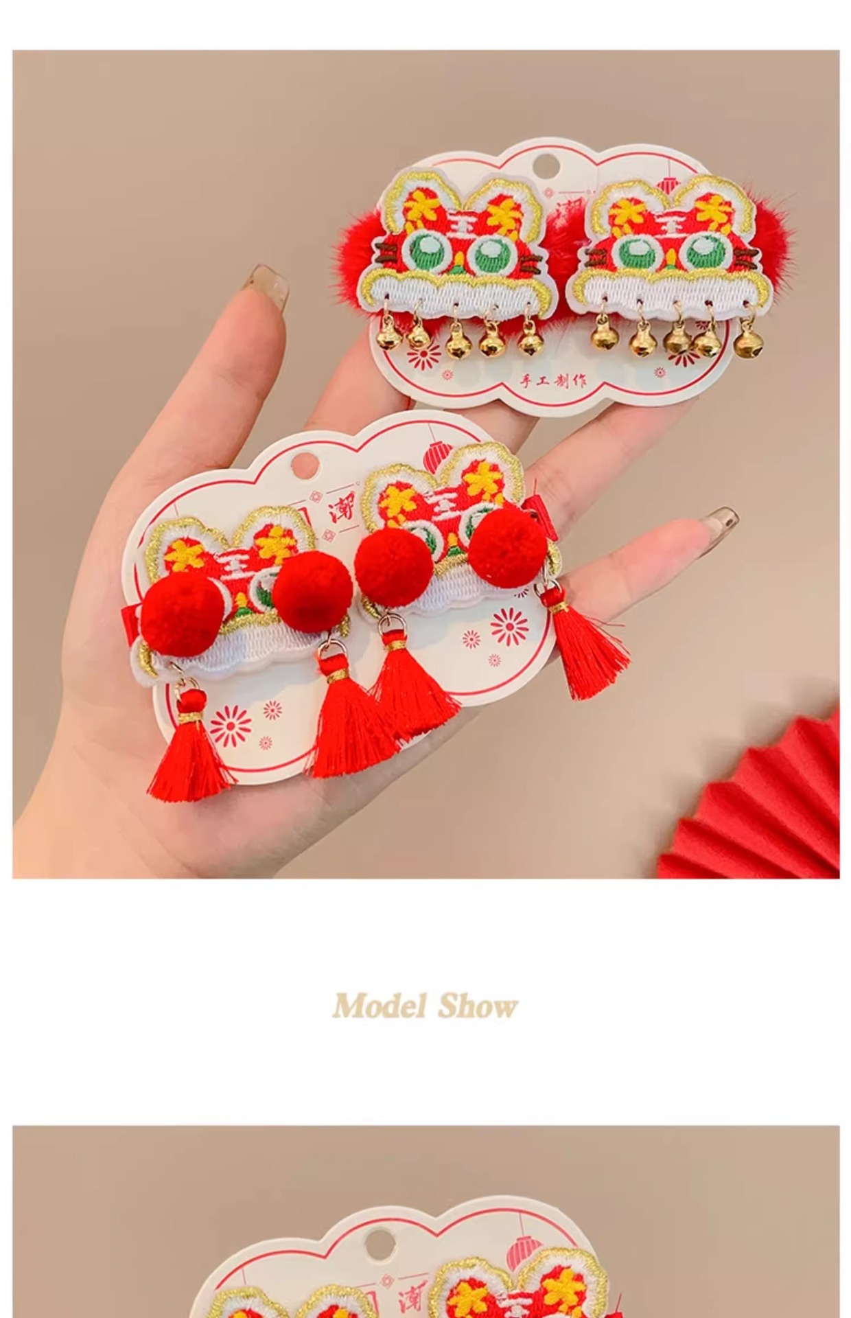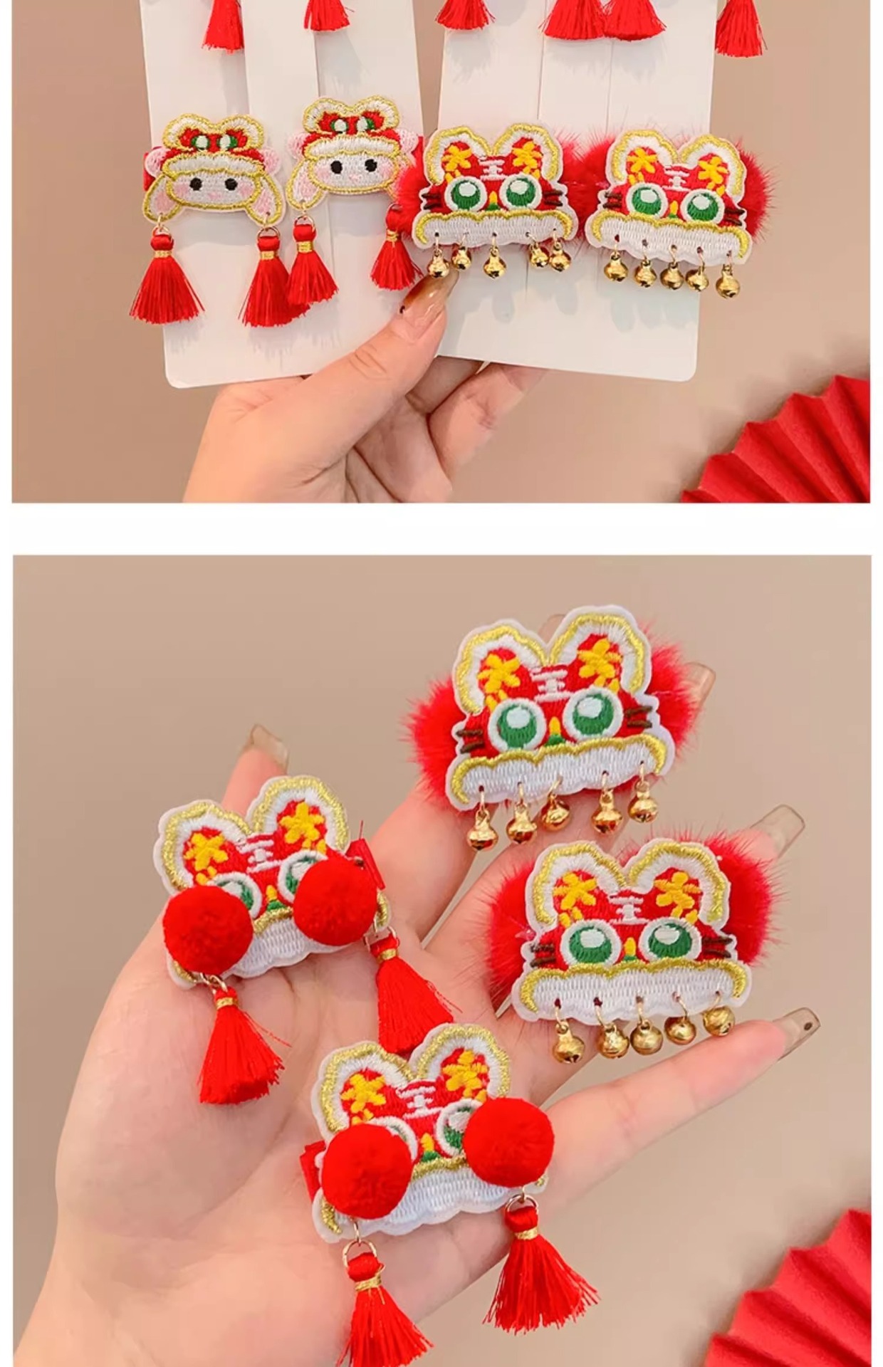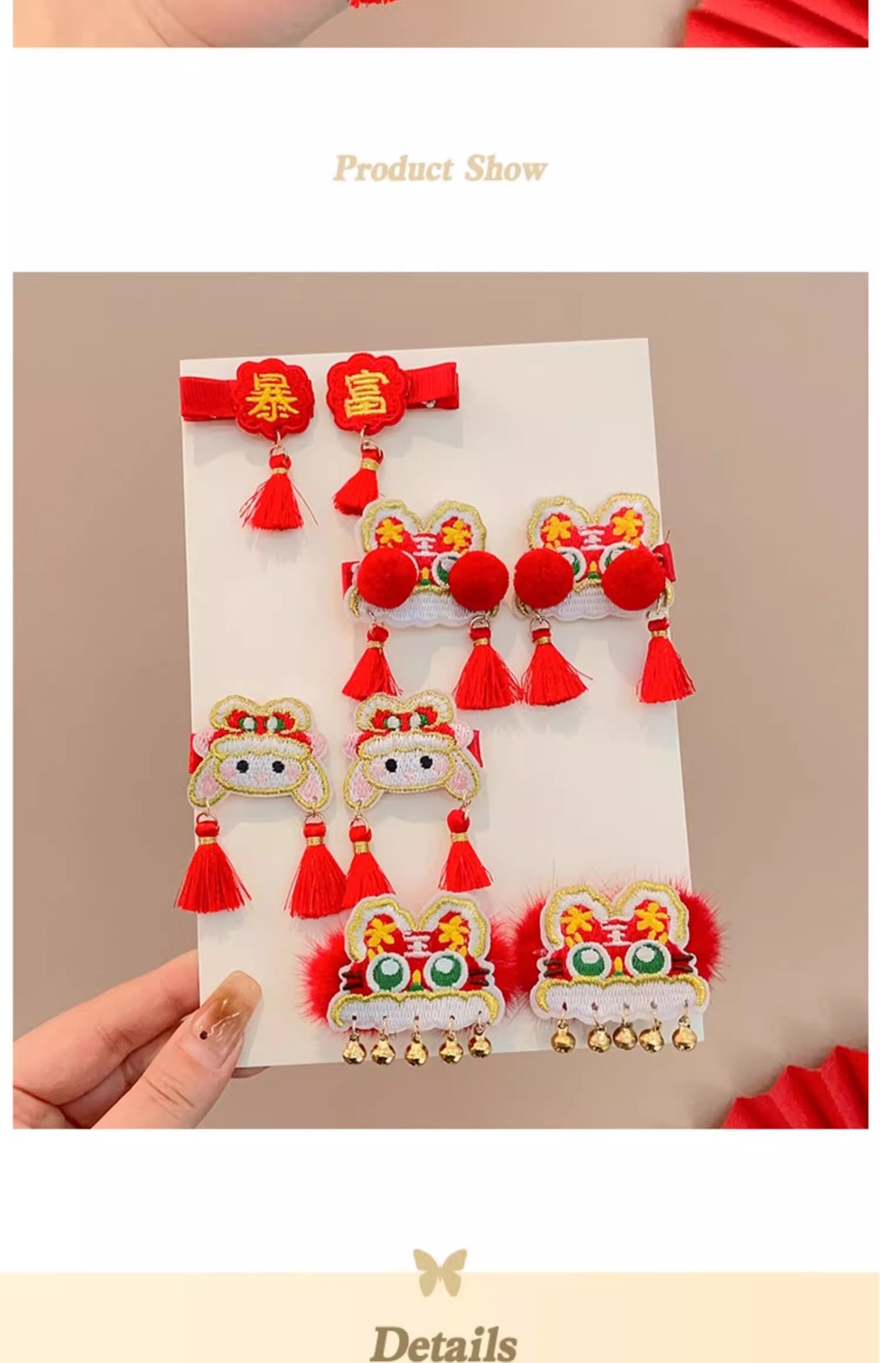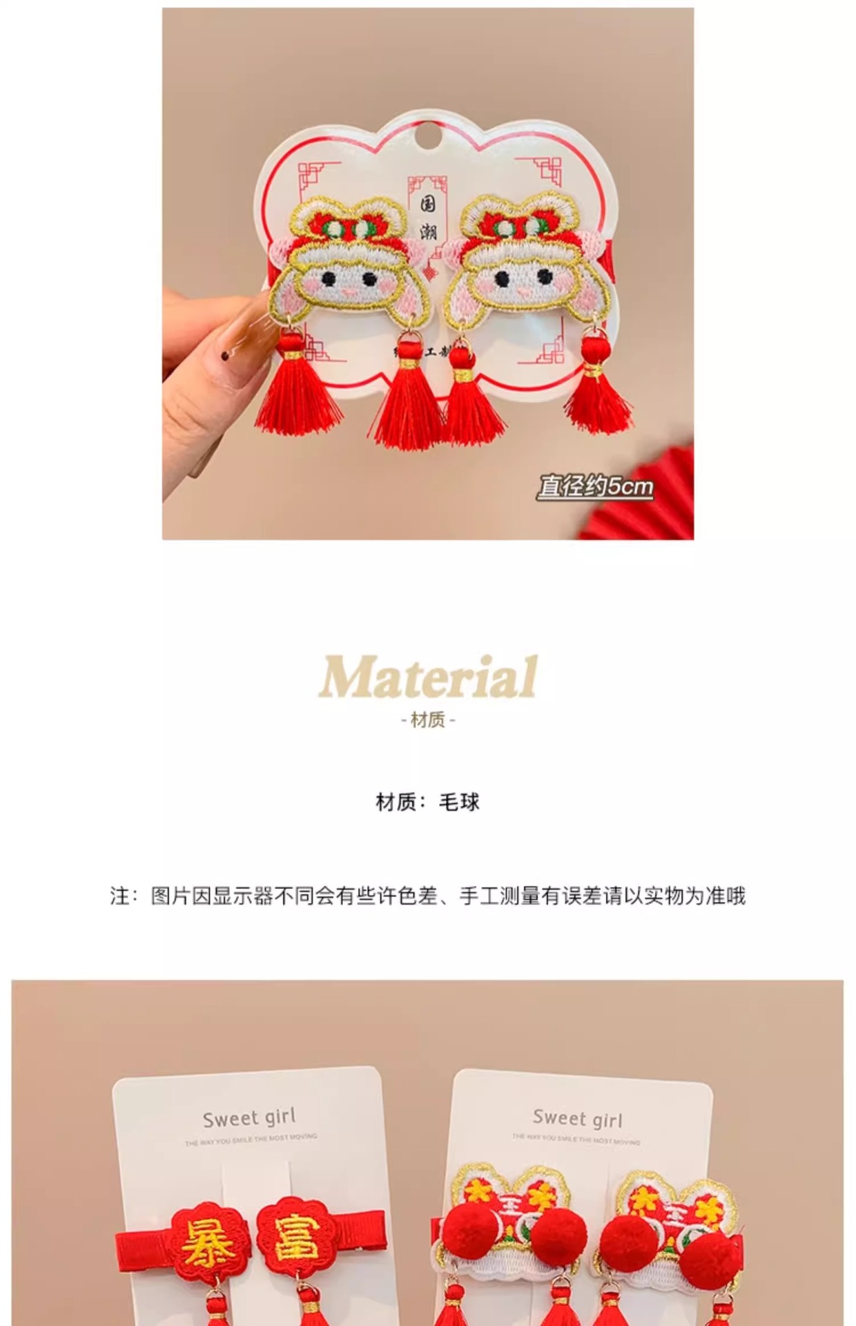 红色喜庆暴富发夹新年发饰儿童刘海夹女童宝宝发卡中国风过年对夹
