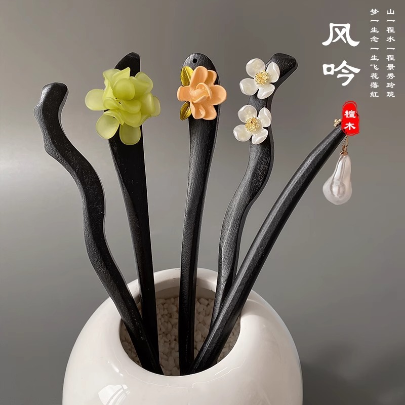 儿童发簪古风女童发饰马面裙配饰新中式简约黑檀木簪子汉服头饰