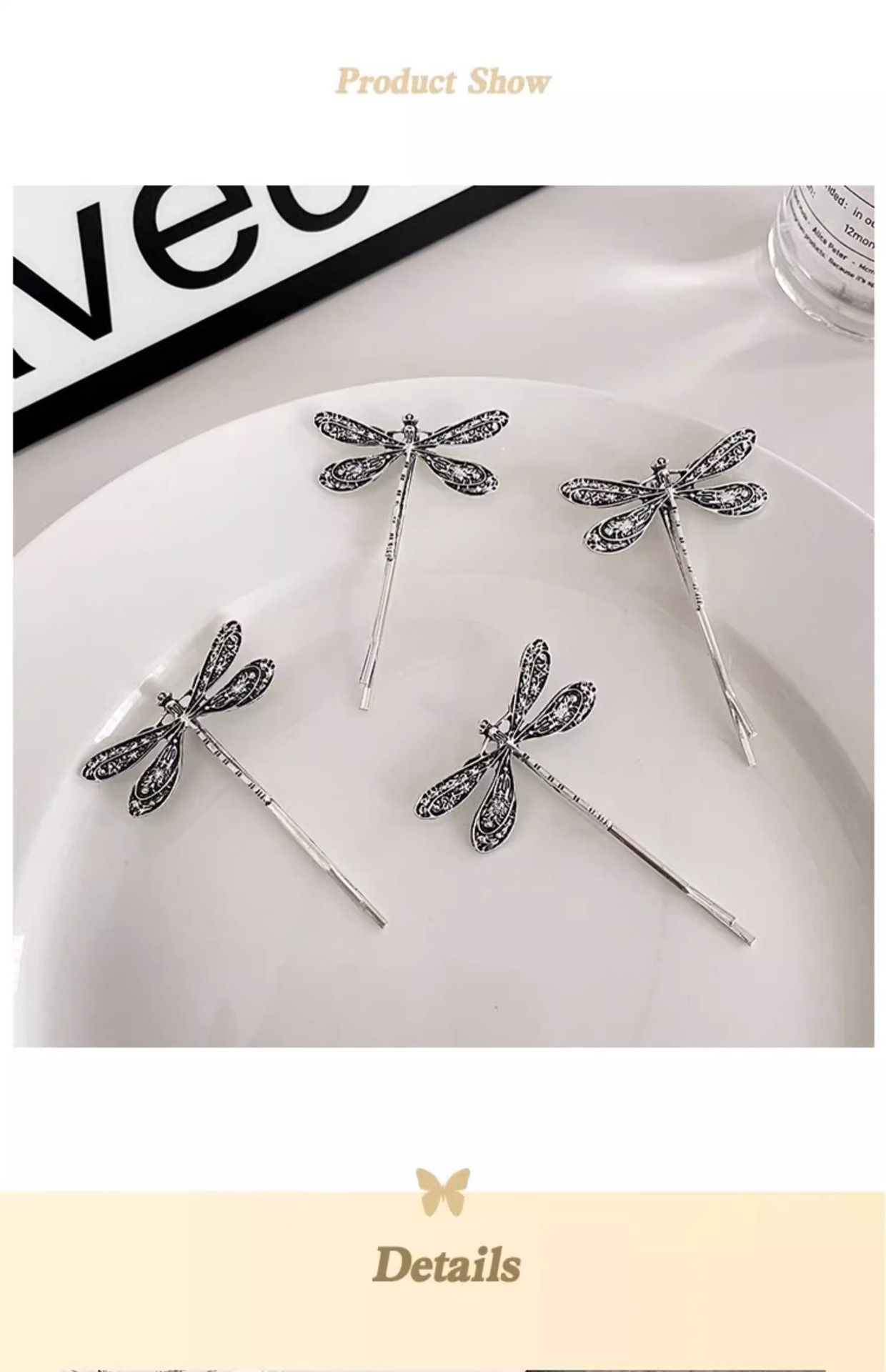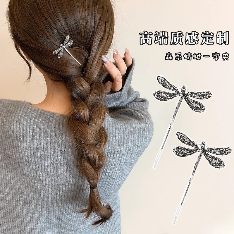 高级感甜美森系蜻蜓一字夹发夹女前额侧边刘海碎发鸭嘴夹头饰发卡