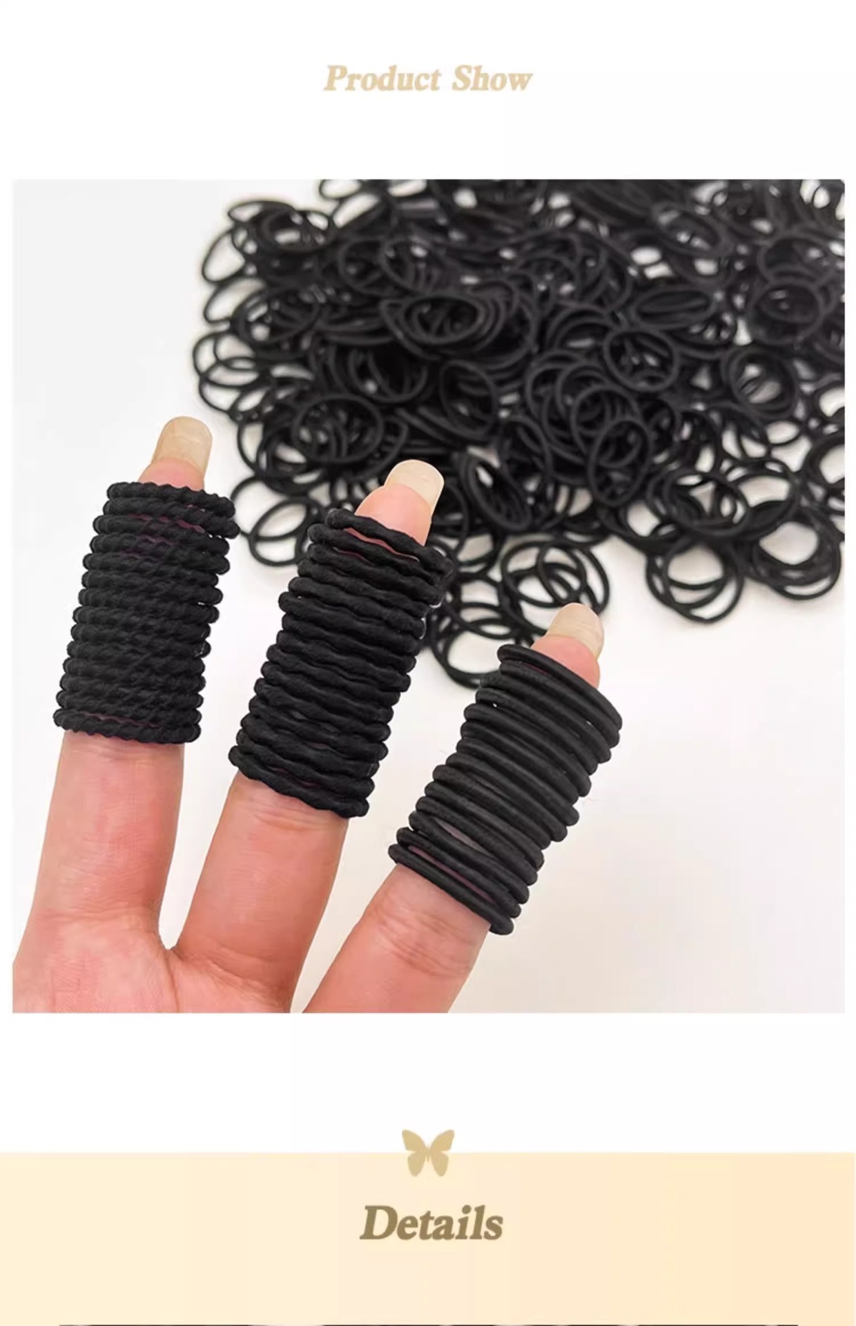 宝宝扎头发橡皮筋黑色拇指小发圈儿童不伤发头绳发饰女童发绳皮套