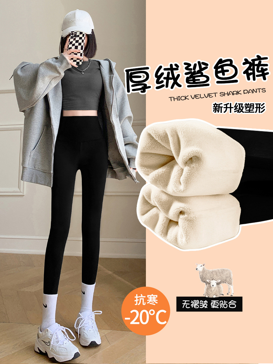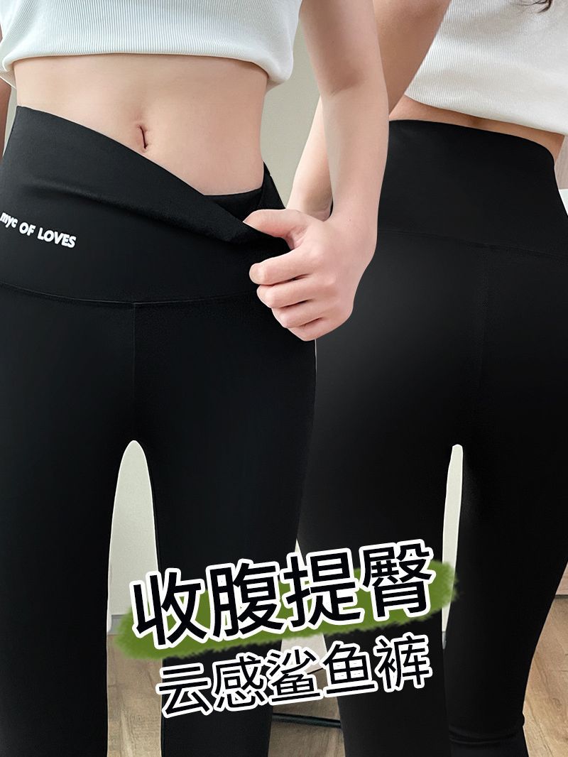 鲨鱼裤女收腹提臀加厚加绒外穿2023芭比裤九分字母高腰瑜伽打底裤