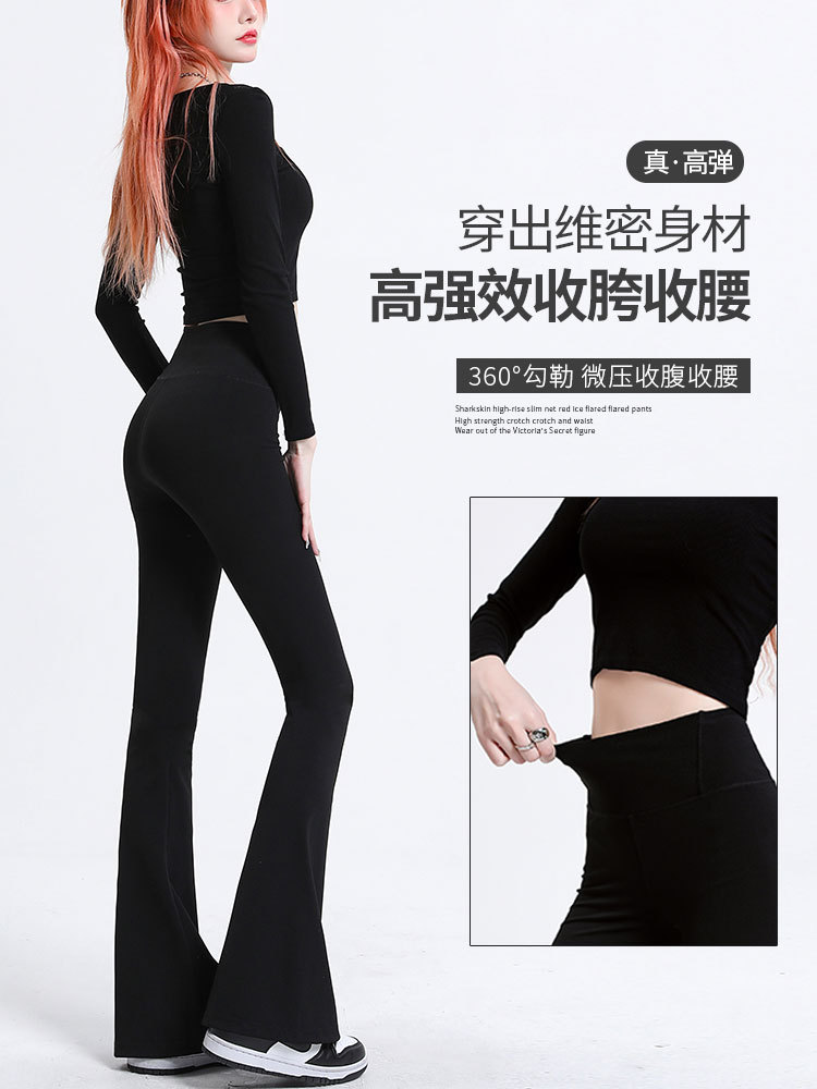鲨鱼喇叭裤外穿高腰收腹提臀长裤秋冬遮肉微喇高弹性感芭比瑜伽裤